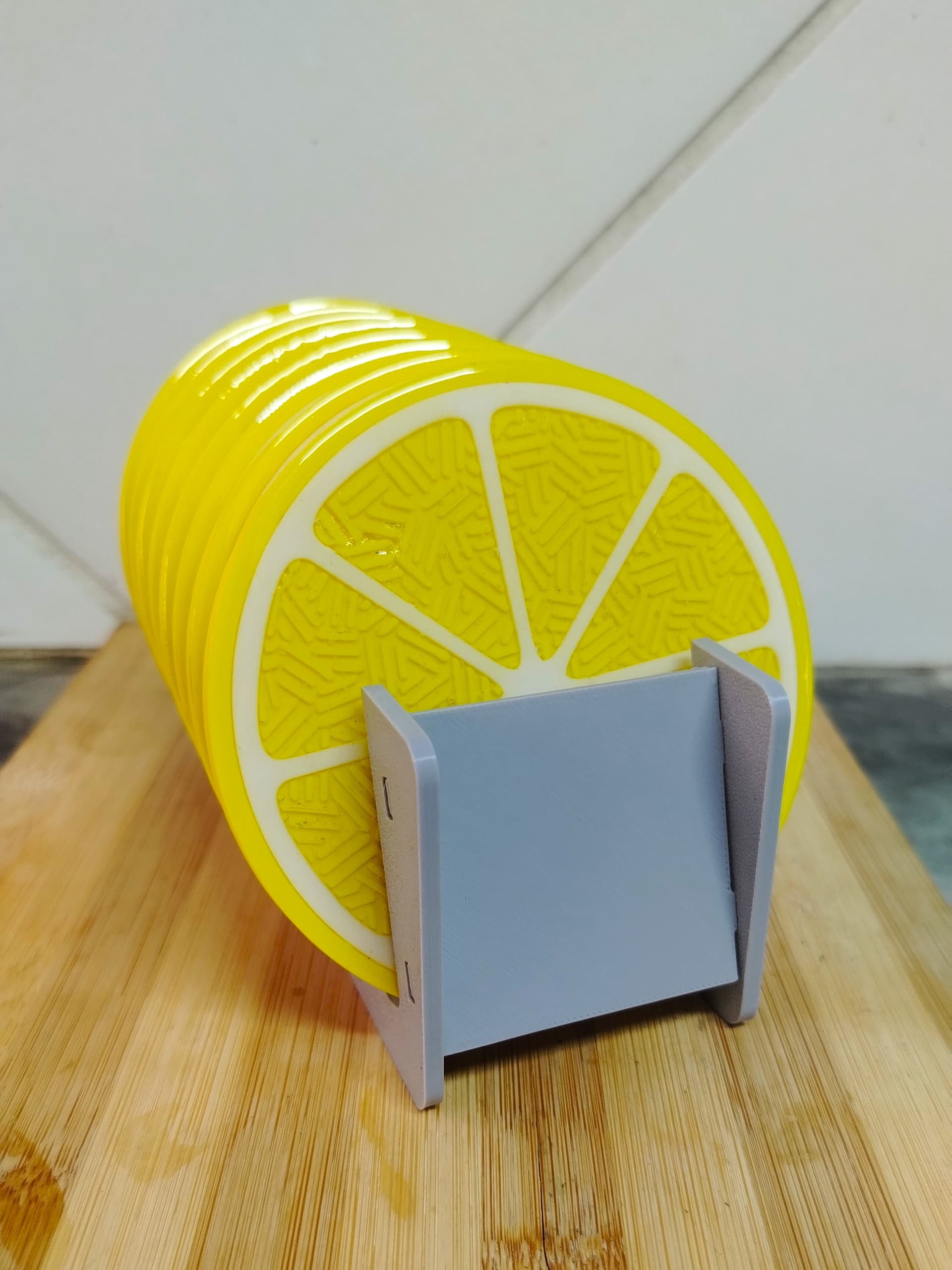 Brighten up your space with a splash of citrus charm! The Zesty Stack is a vibrant 8-piece coaster set inspired by fresh lemon slices, neatly stacked in a sleek holder for easy access. Each coaster delivers a juicy pop of color while protecting your surfaces from spills and heat.