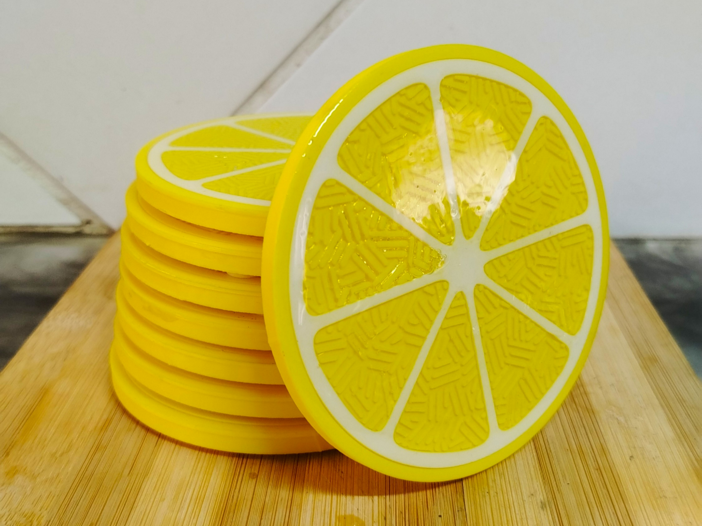 Finished with a glossy UV resin coating, these coasters have a smooth, glass-like shine that enhances the vibrant lemon design while adding extra durability and easy cleaning.