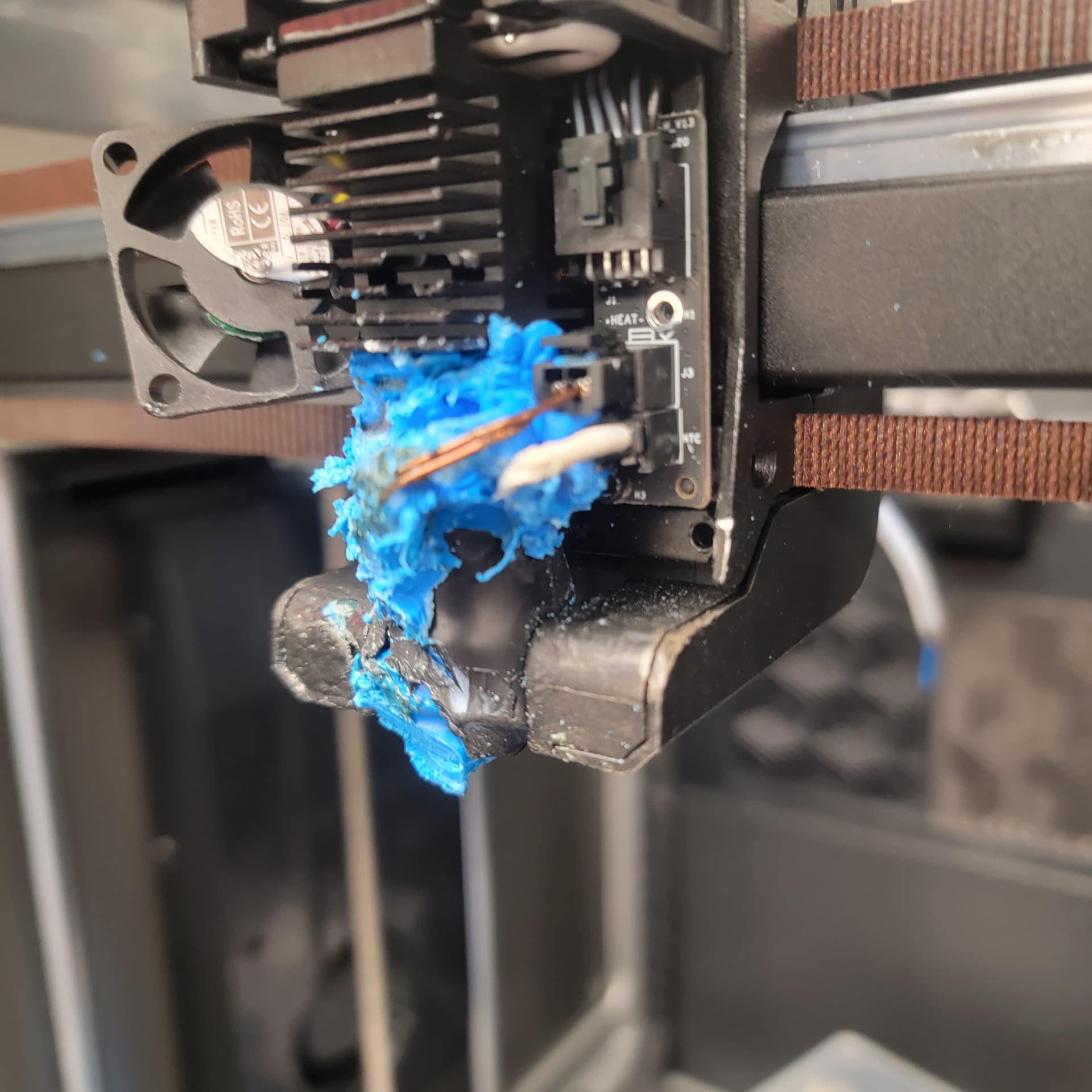 So I purchased my k2 plus little less than 10 days ago. I set up a print for my Vallejo paints before bed however when I woke up I woke up to a blue harden glob of plastic pooled over the entire heat end. After heating a junk knife and breaking away everything i noticed the the rubber boot exploded outwards. The plastic pushed the hot end connections loose from the board. Plastic built up and cracked the the edge of the fan as well. Now I know im not a genius and am still new to 3d printing but this should not have happened. I use a Teflon anti stick on the nozzle as well. But after 6 hours and reaching out to customer service im pretty confident I will get no where with the company. Debating if I should return the k2 plus and go with the bambu labs instead. After spending 60 additional dollars on new replacement parts and slight upgrades im back up and running.