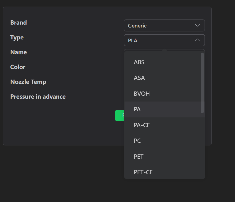 @Mr_MBR I still have the same problem, but i don’t have the option in the device tab to change the filament type. Its just a blank window.