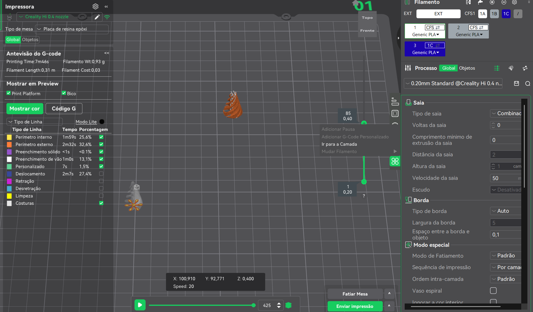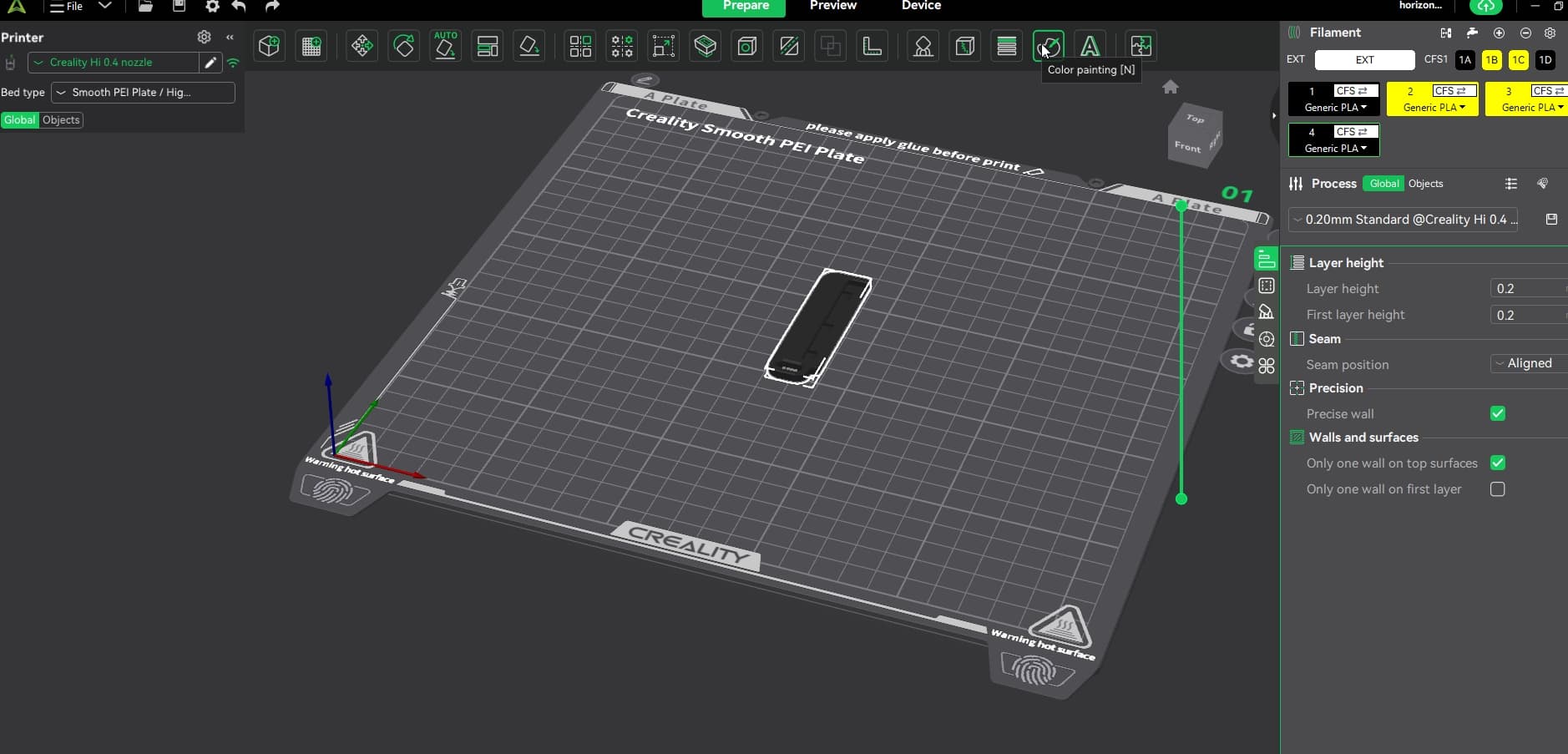 - I slice the object and send it for print and it automatically does the material selection base on the color/CFS slot selected.