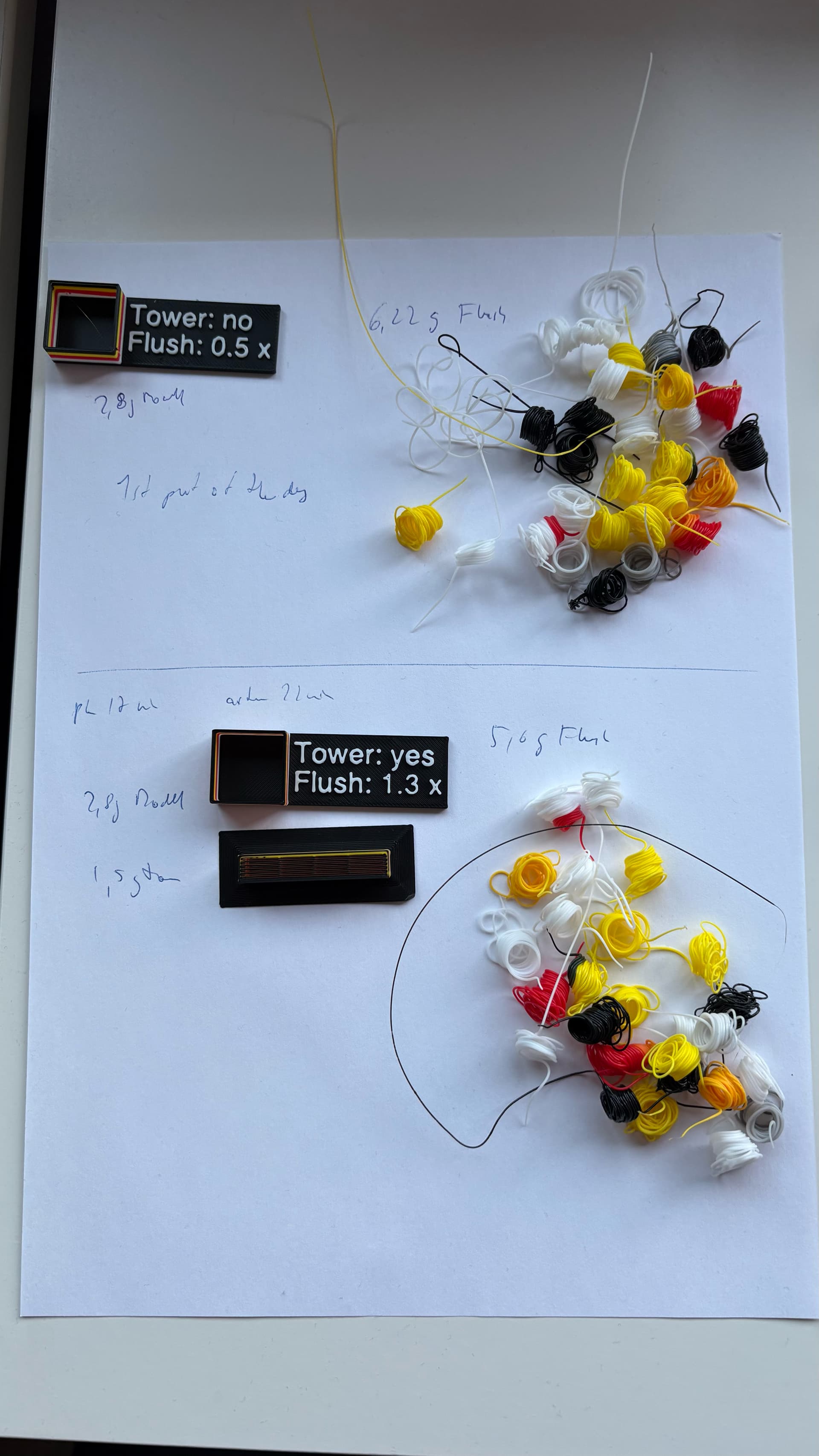 no difference using a tower for flushing (assumption from prior printing, also