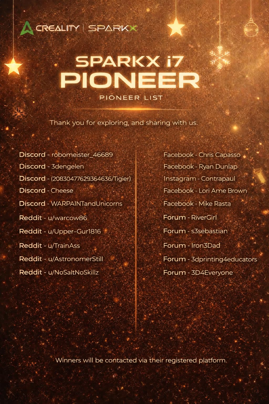 Congratulations to the 20 selected Pioneers who will be among the first to experience the Sparkx i7 — completely free.
