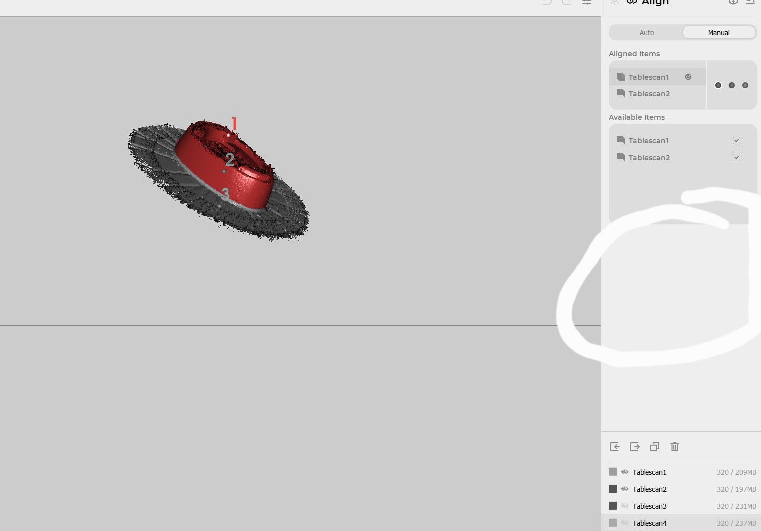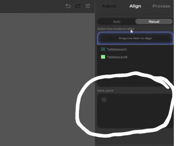 Guys, can anyone help me. I’ve just got my lizard 3d scanner and installed the software. But when I want to manually align items I have no mark point window the white background photo is from my software and the black background photo is from a video I was working from as you can see I don’t have the option to mark points. Any idea what I’m doing wrong. Tia