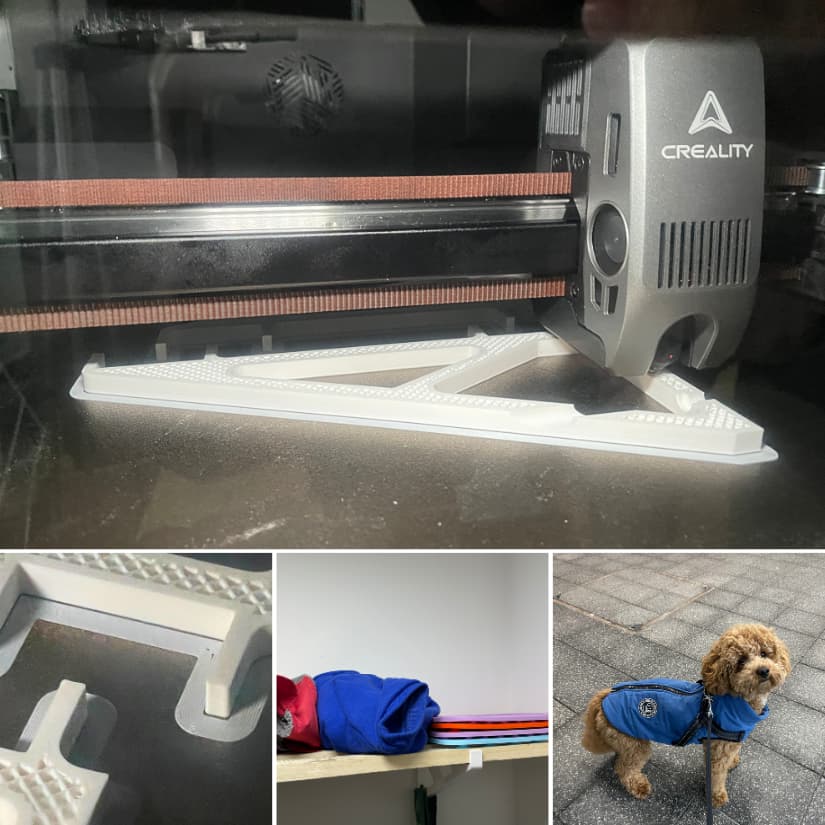 Just showing off. I had a great experience printing engineering-grade materials on my Creality K2 Plus and now on the K2 Pro. PC-ABS can be stubborn to stay on the bed, and warping is a real issue. A heated print bed, heated chamber, and high-temperature extruder make it possible. In the image, the K2 Pro is printing modified Joel Telling shelf brackets. Now we have a nice shelf for Teddy’s