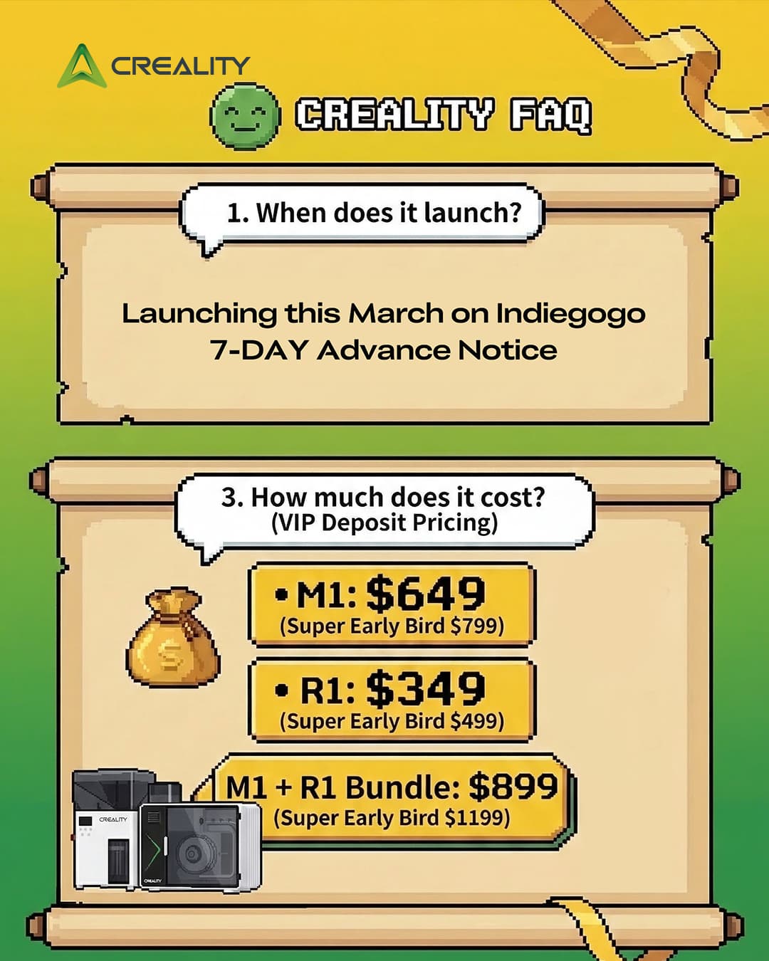 Creality M1 & R1 โ Quick FAQ Before Launch ![]()