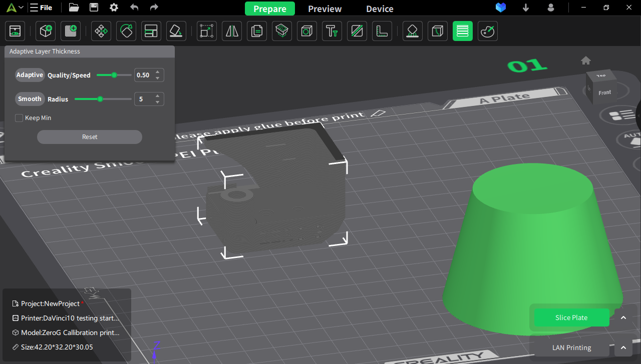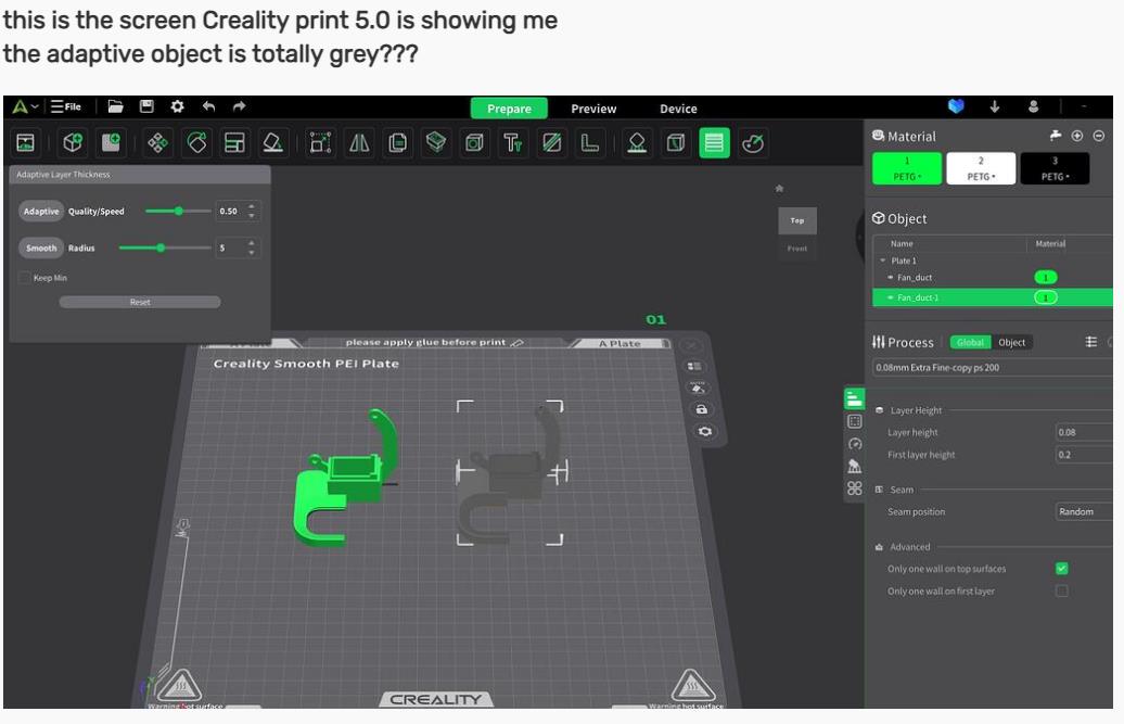 this is the screen Creality print 5.0 is showing me