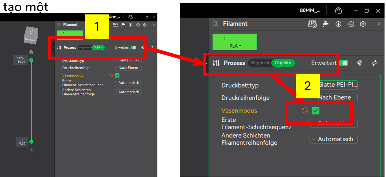 Meine ersten Vasen sind immer innen gefüllt. Was muss ich wo einstellen, damit hohle Gefäße gedruckt werden?
