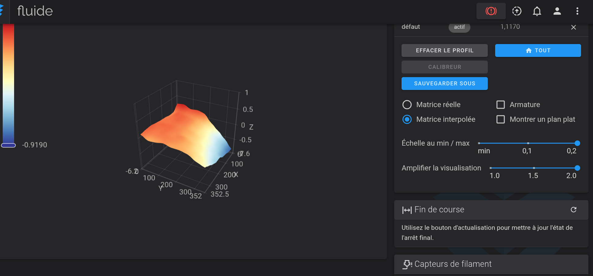 Pouvez vous essayer de vous connecter sur fluidd pour visualiser la planéité du plateau ?