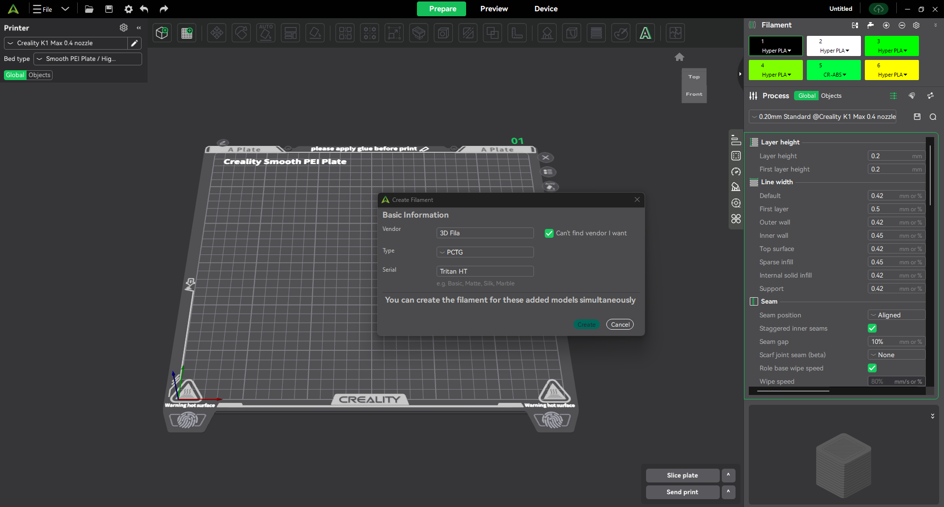 I would like to ask for the introduction of a PCTG/Tritan filament profile for the K1 Max into the Creality Print V6.