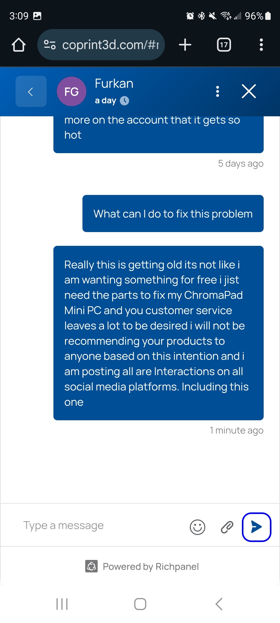 I can say that coprint Customer service is lacking