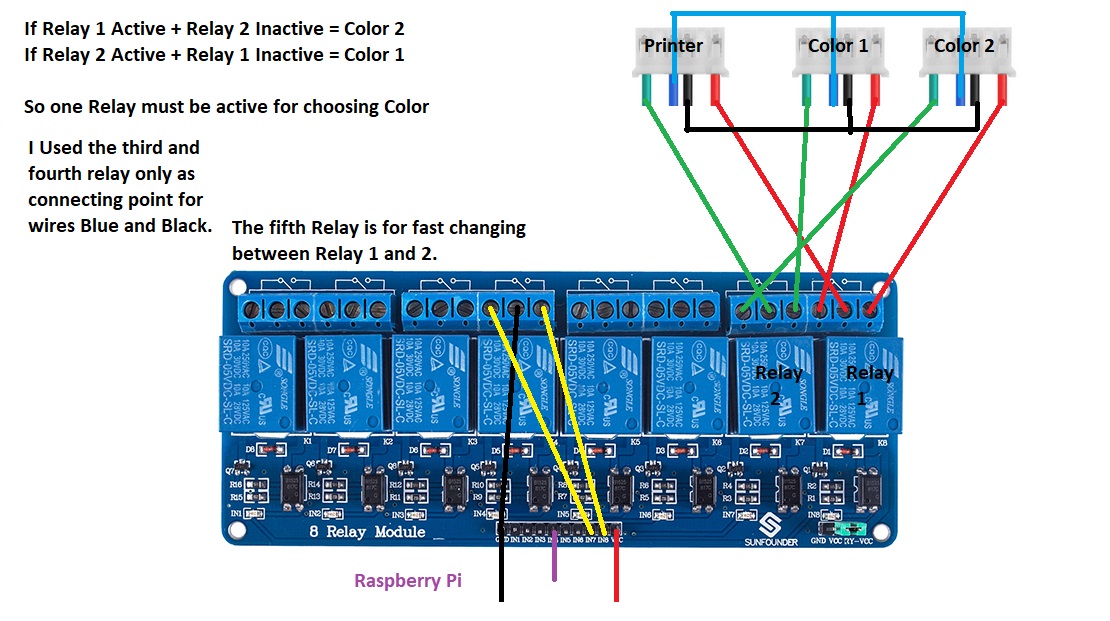 Here is my Diagram of wiring. And in Tests it worked Like a Charm but sometimes from switching the extruder stop working.
