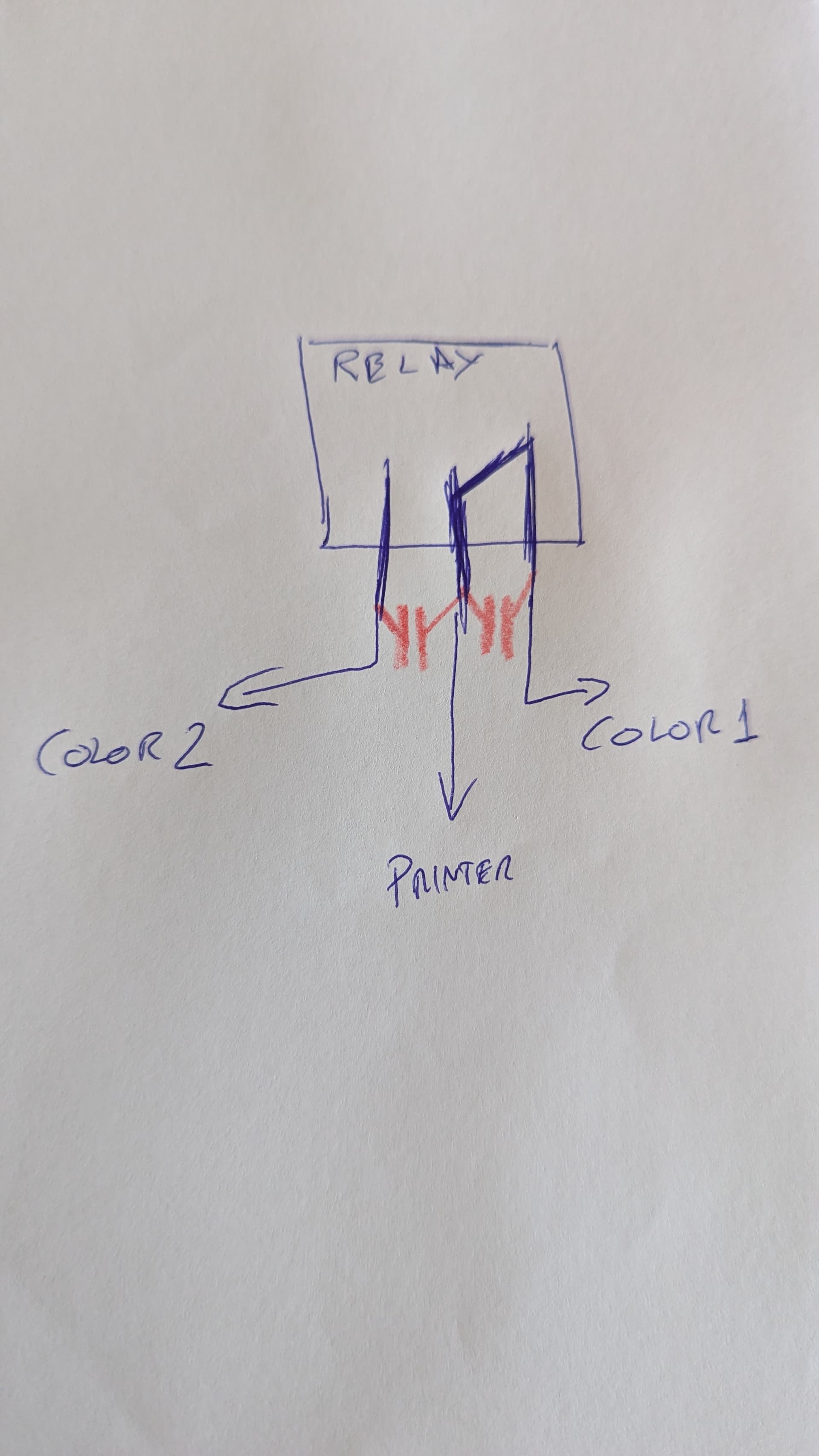 Our setup are not the same, I see you are using a switch to switch colors and I use custom g-code, which allows me to have a bit more control over when the relay is changed, which might be a big difference or no difference at all, depending on how you control the relays