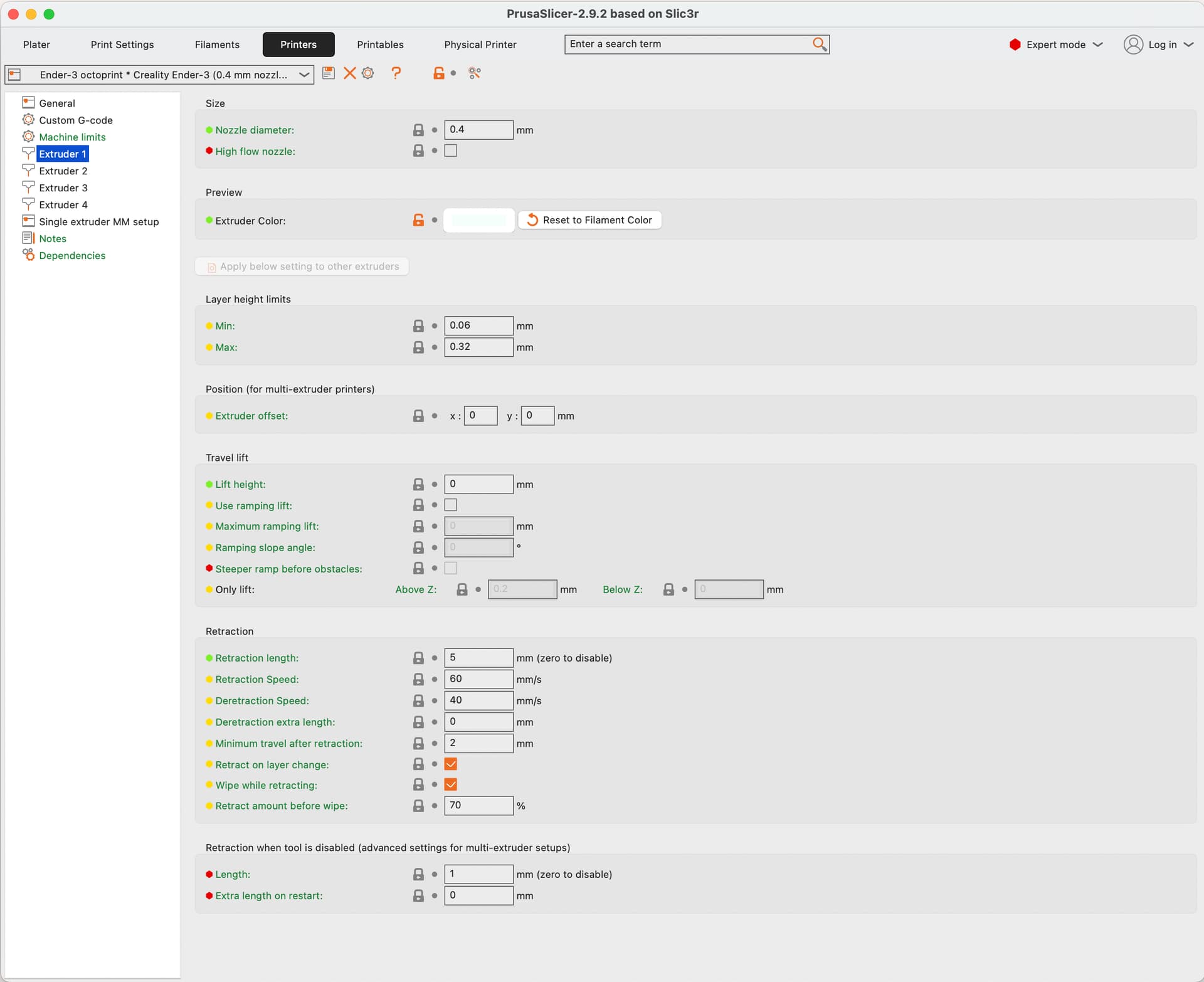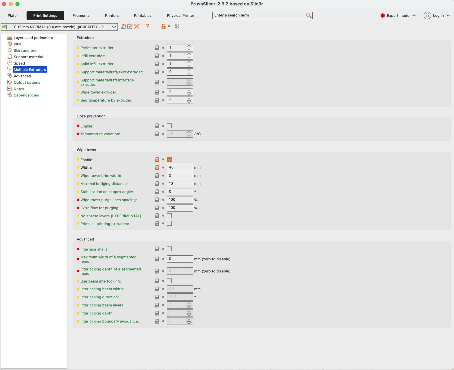 From the PrusaSlicer config, few snapshots that might be interesting: