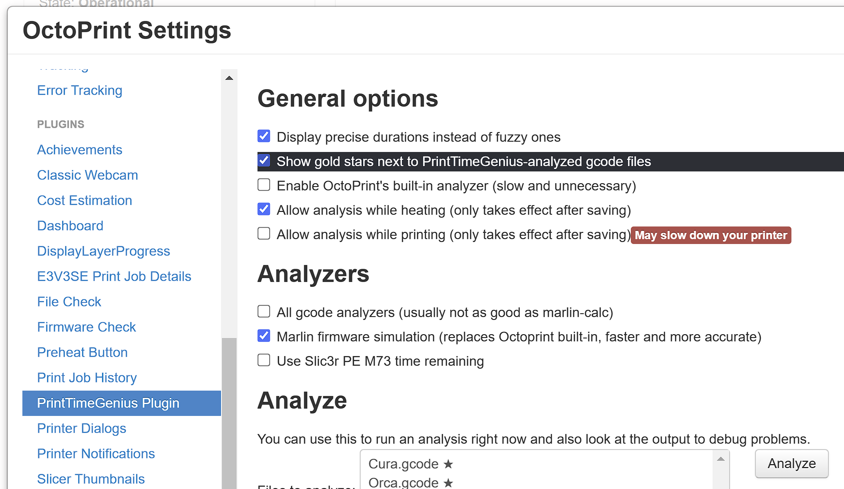 I further investigated my other issues with the OrcaSlicer sliced gcode files unable to show metadatas related to filament used and stuff and I found another thing, PTG cannot work with OctoPrint-SlicerEstimator plugin. If SlicerEstimator plugin is enabled, PTG will not run the analysis and all the other metadata analysis like CostEstimation, PrintJobHistory, etc. will also not work. I do not understand why but I can live without it.