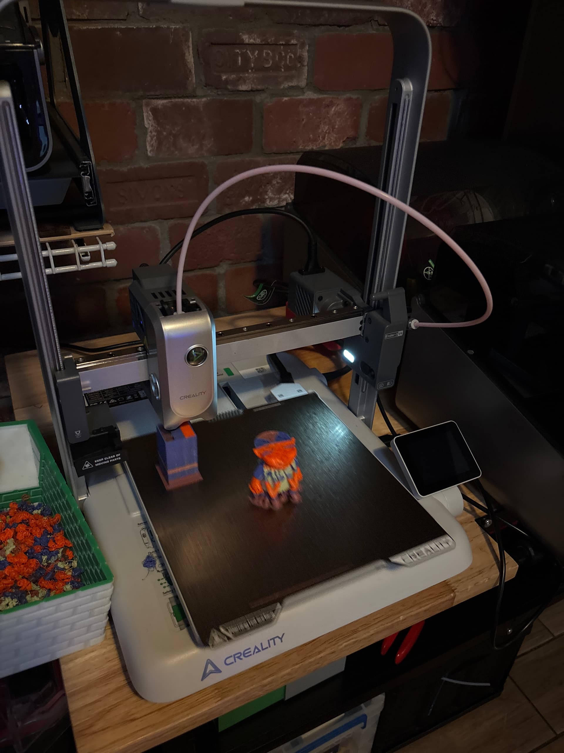 Here is the initial setup and first print on the Ender 3 V4 with CFS. Working nonstop since then. Sturdy little bedslinger.