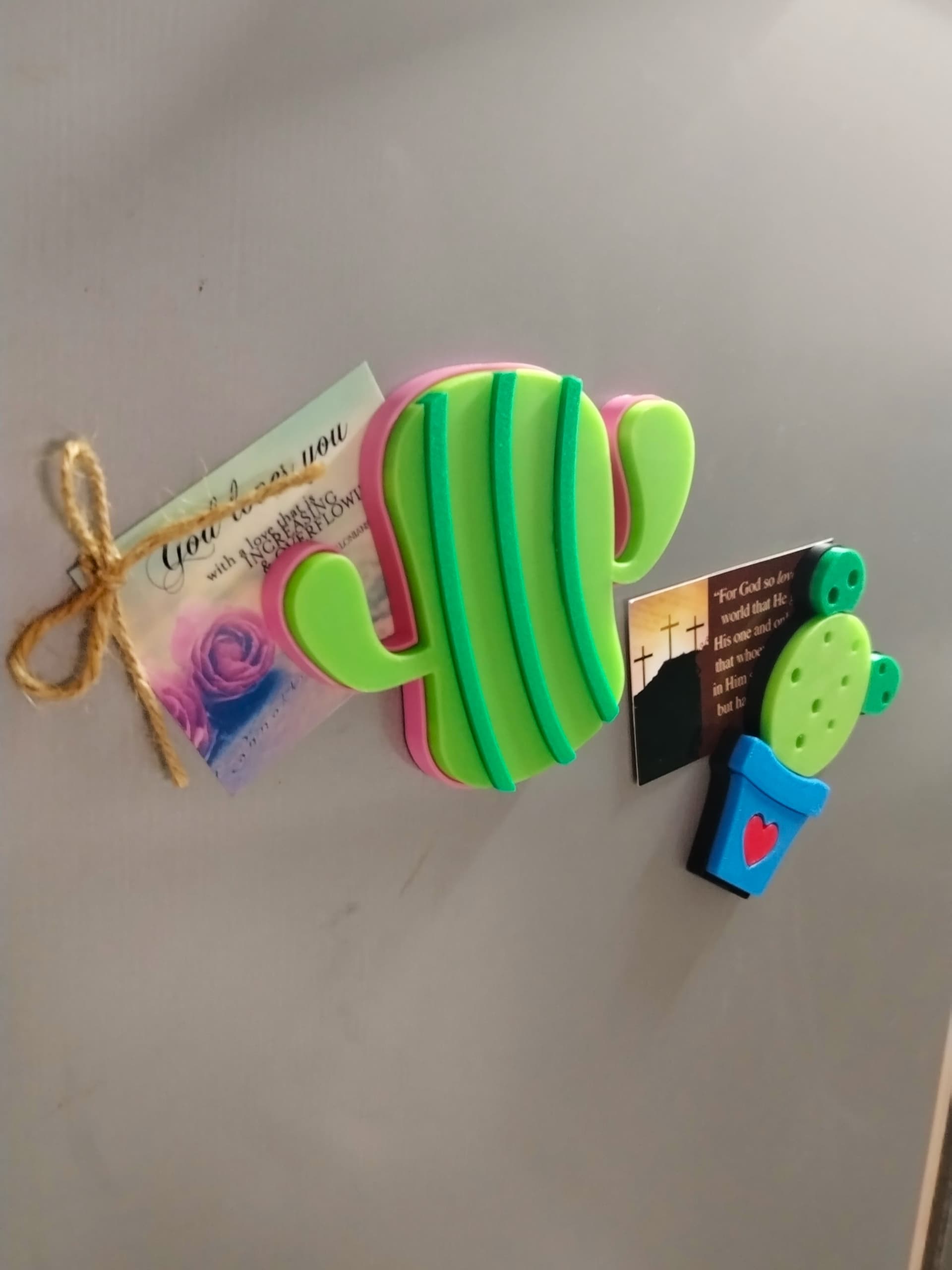 From the sweet little cactus in its bright pot with a tiny heart to the bold saguaro-inspired friend standing tall, this duo is full of personality and charm. They’re the perfect reminder that plants don’t always need watering to brighten your space. Whether sitting on a desk, shelf, or workspace next to your printer, these prickly buddies add a splash of fun and creativity to any corner.