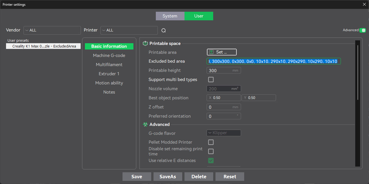 So w/in Creality Print when viewing the Printer Settings, in the Basic Information section, there’s a “excluded bed area“ field that I cannot find any examples online, or in the Online Help pages that describes how this should be set.