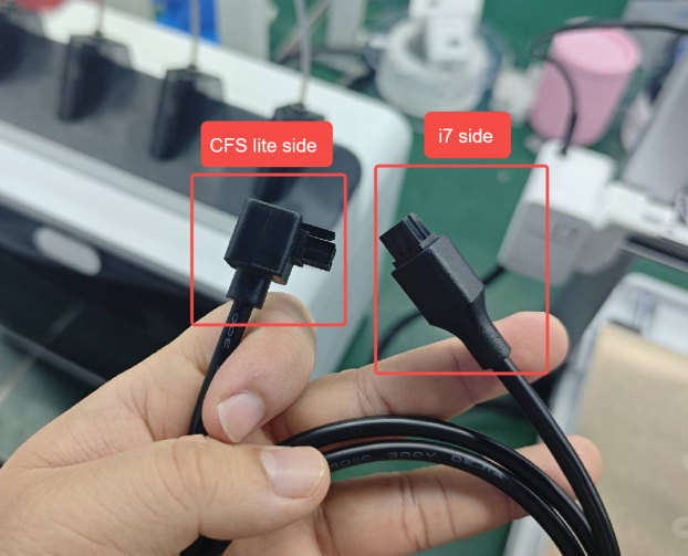 Place the CFS Lite and the printer properly, then connect the 485 communication cable. Note: The right-angle end of the communication cable must be connected to the CFS Lite.