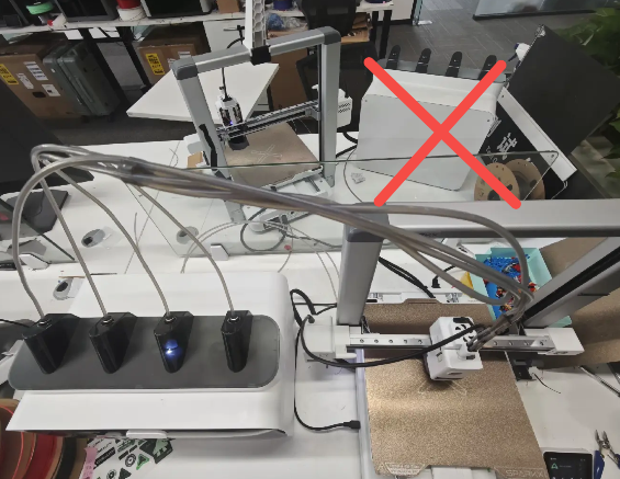To ensure an optimal printing experience, please pay attention to the placement of the printer when using the CFS Lite. For detailed placement methods and precautions, please refer to CFS Lite Filament Tube Installation and Placement Guidelines