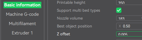 So in my case when I print PLA on textured plate the Z-Offset will be 0.02, for PETG it would be 0.045 and on High temp plate it would be 0.08 for PLA and 0.105 for PETG.