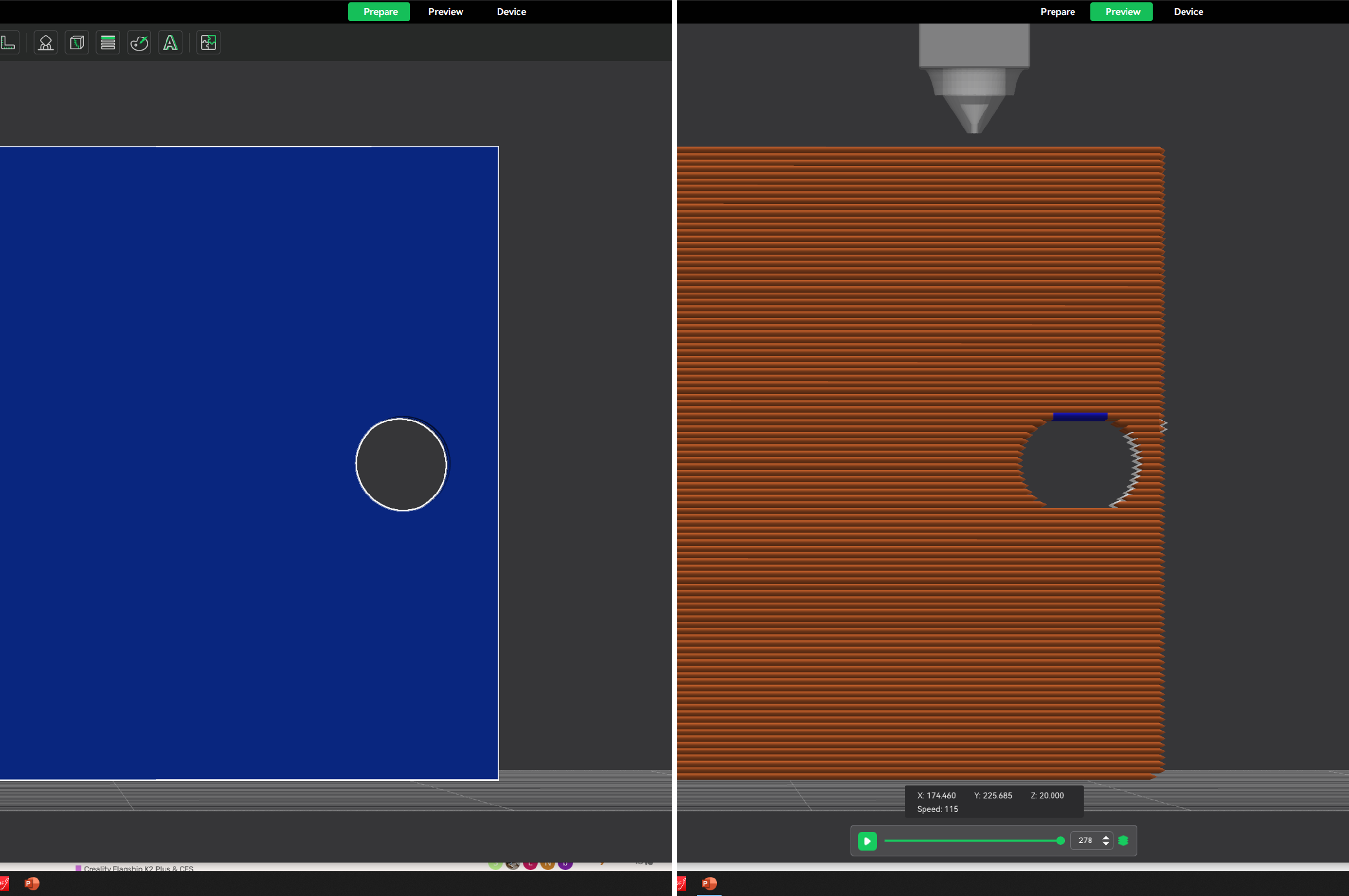 For instance if the hole is 3mm and you’re using 0.2mm layers this is the predicted shape: