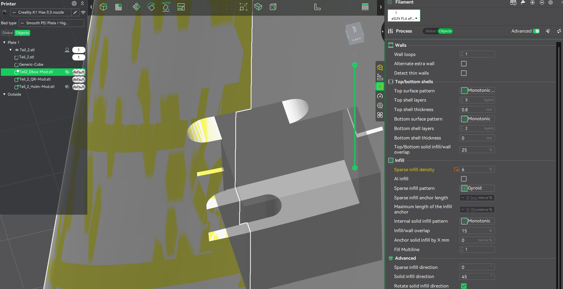 This works perfectly in Prusa Slicer, but I still would like to try printing the wing from Crealty Slicer.