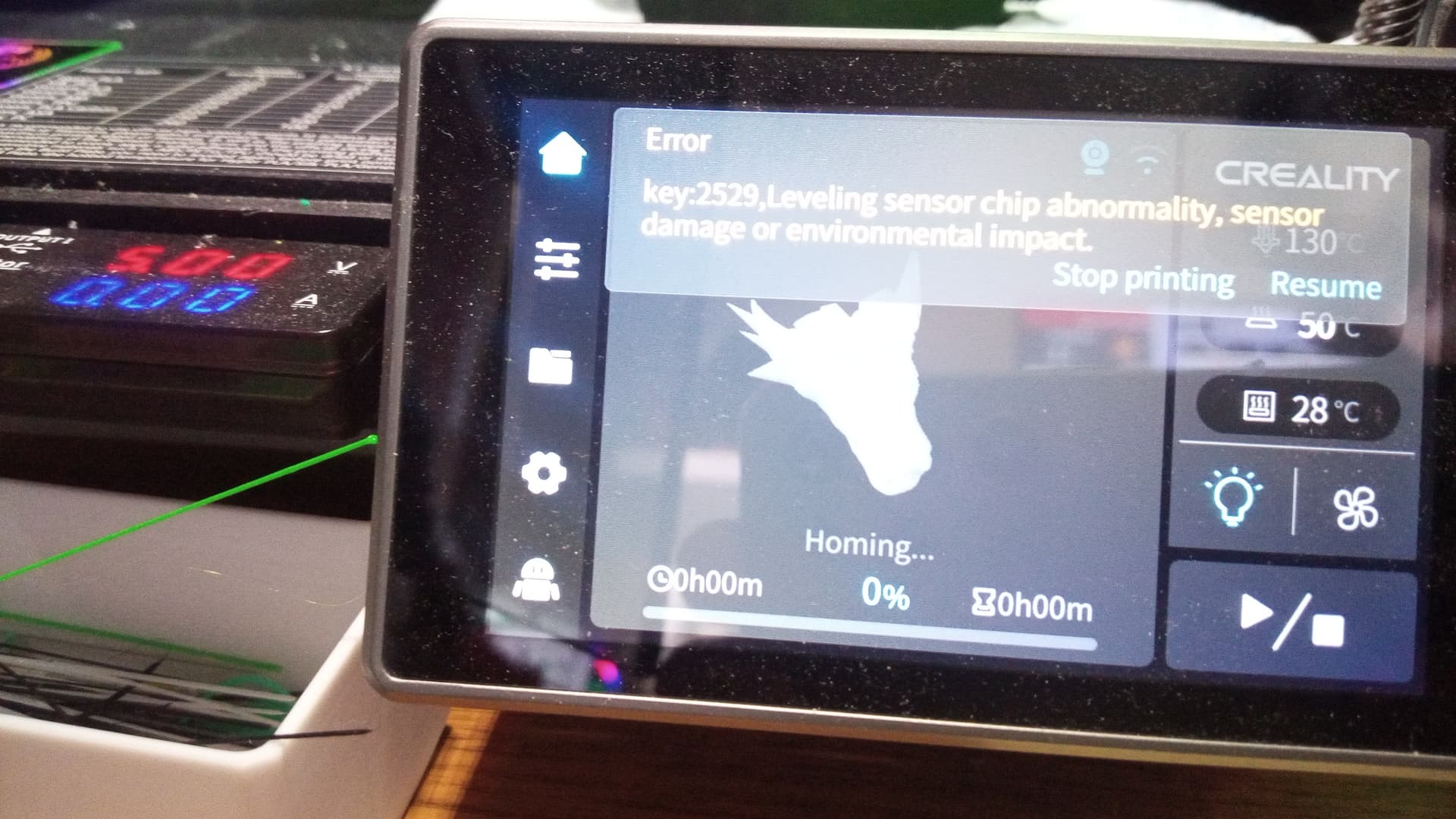after a 80min print (which was a support fail) started print again and Key:2529 error .. tried to self check .. as soon as the bed hit the nozzle it tried to go through the bed ..lol then fail .. as usual turn off/on .. cleared it ran self check and PID all passed .. back to printing.. this happened before and Creality replaced the sensors.. debating if I should report it again ..
