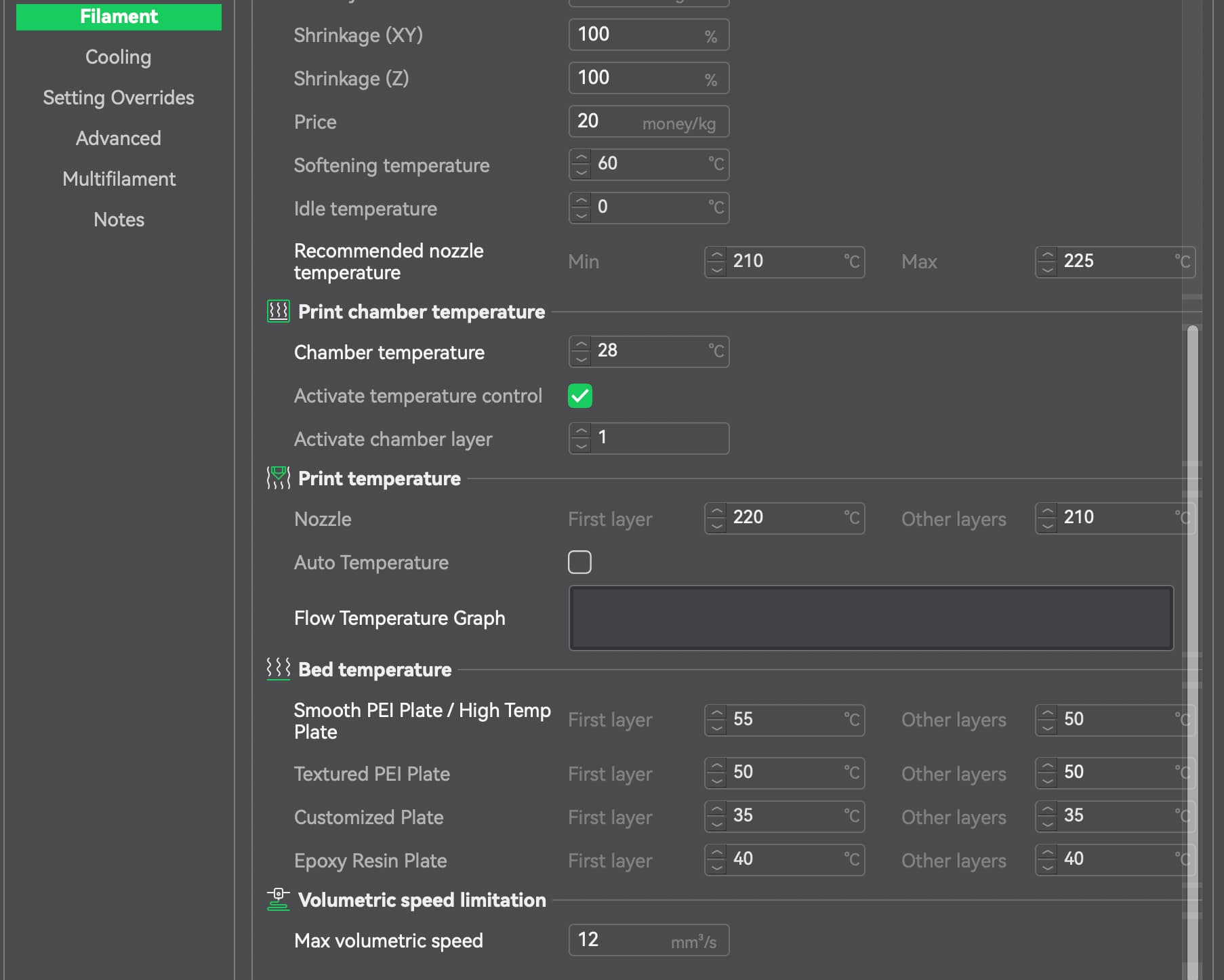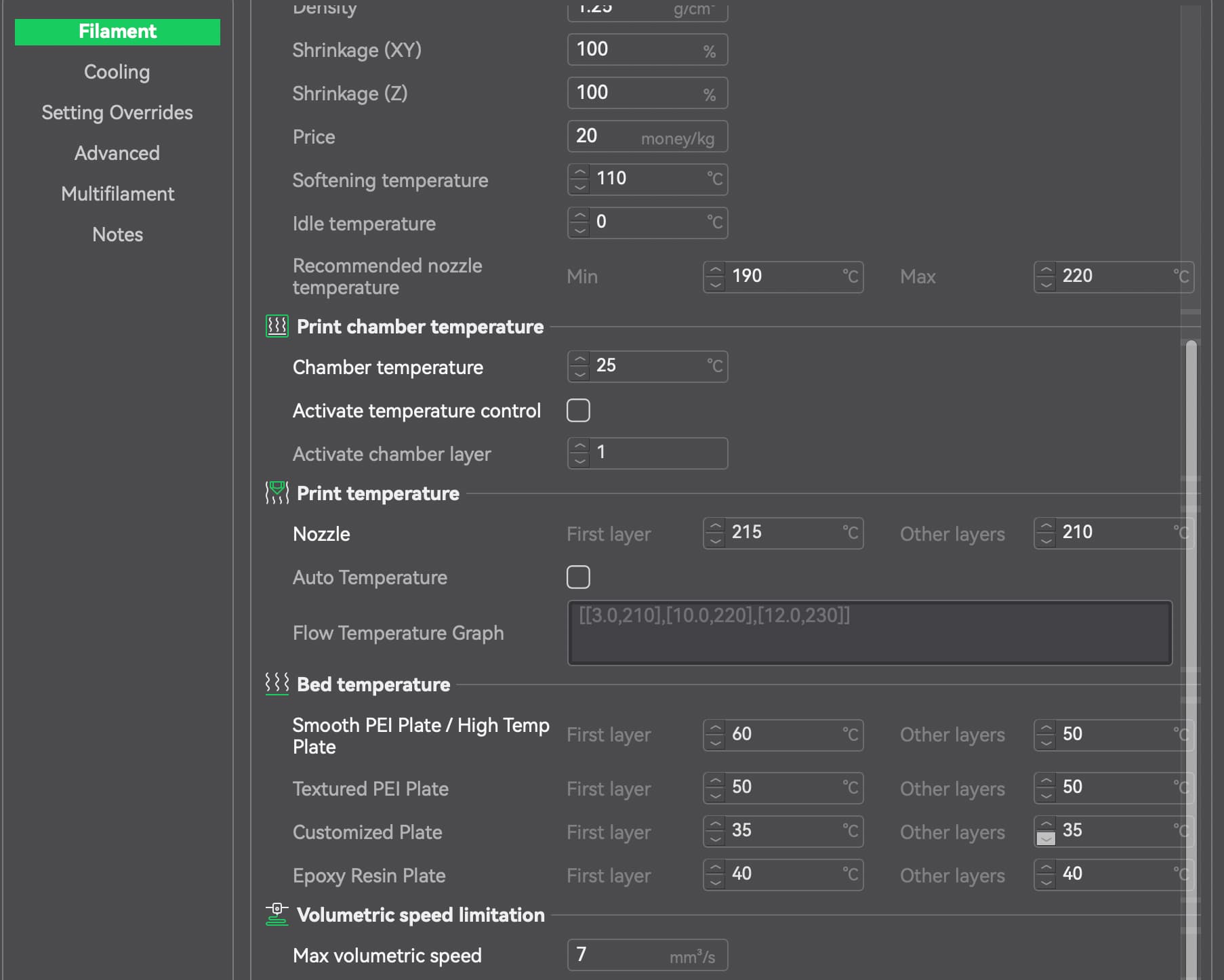 Setting Overrides (Overture PLA):