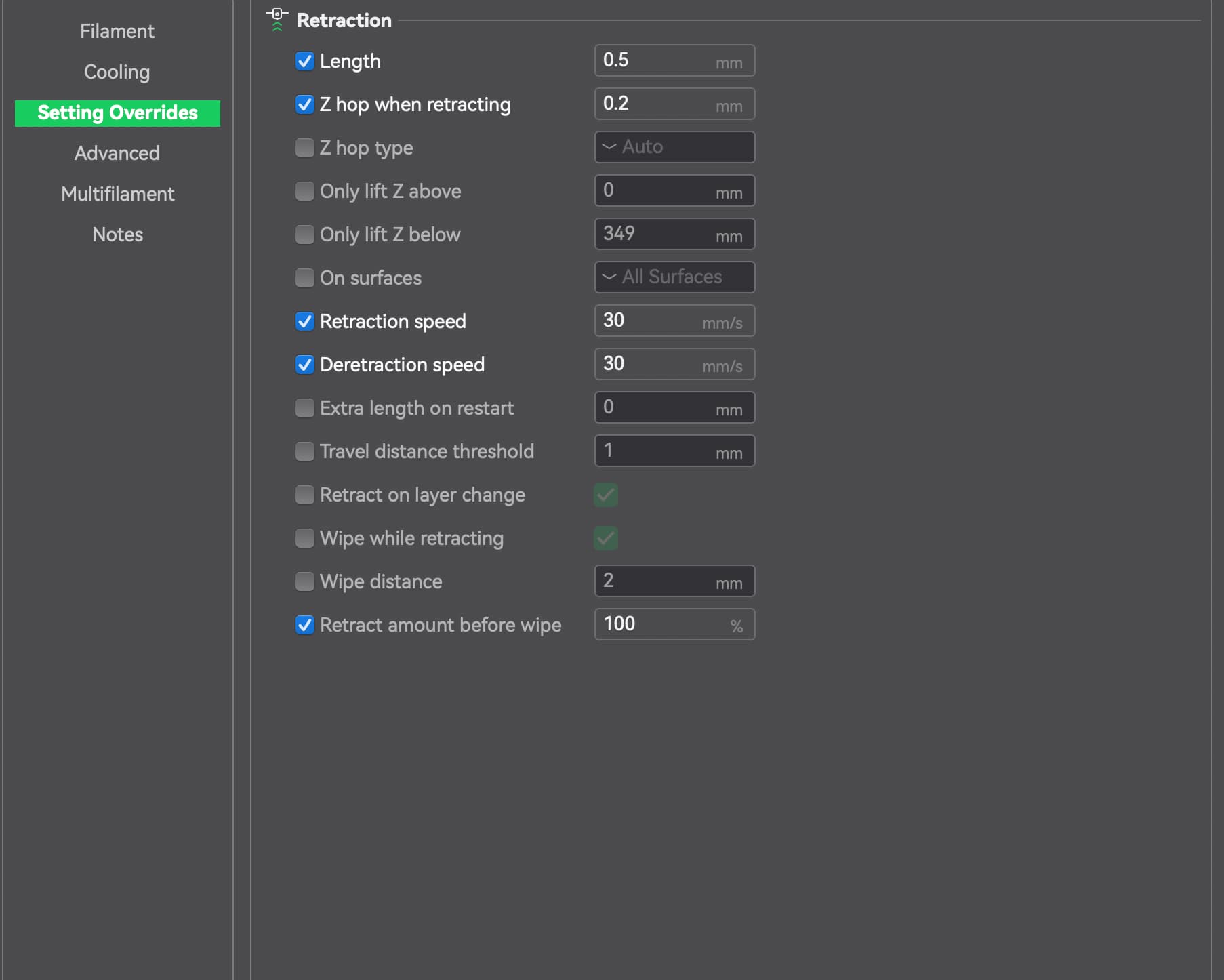 Settings overrides (Hyper PLA)