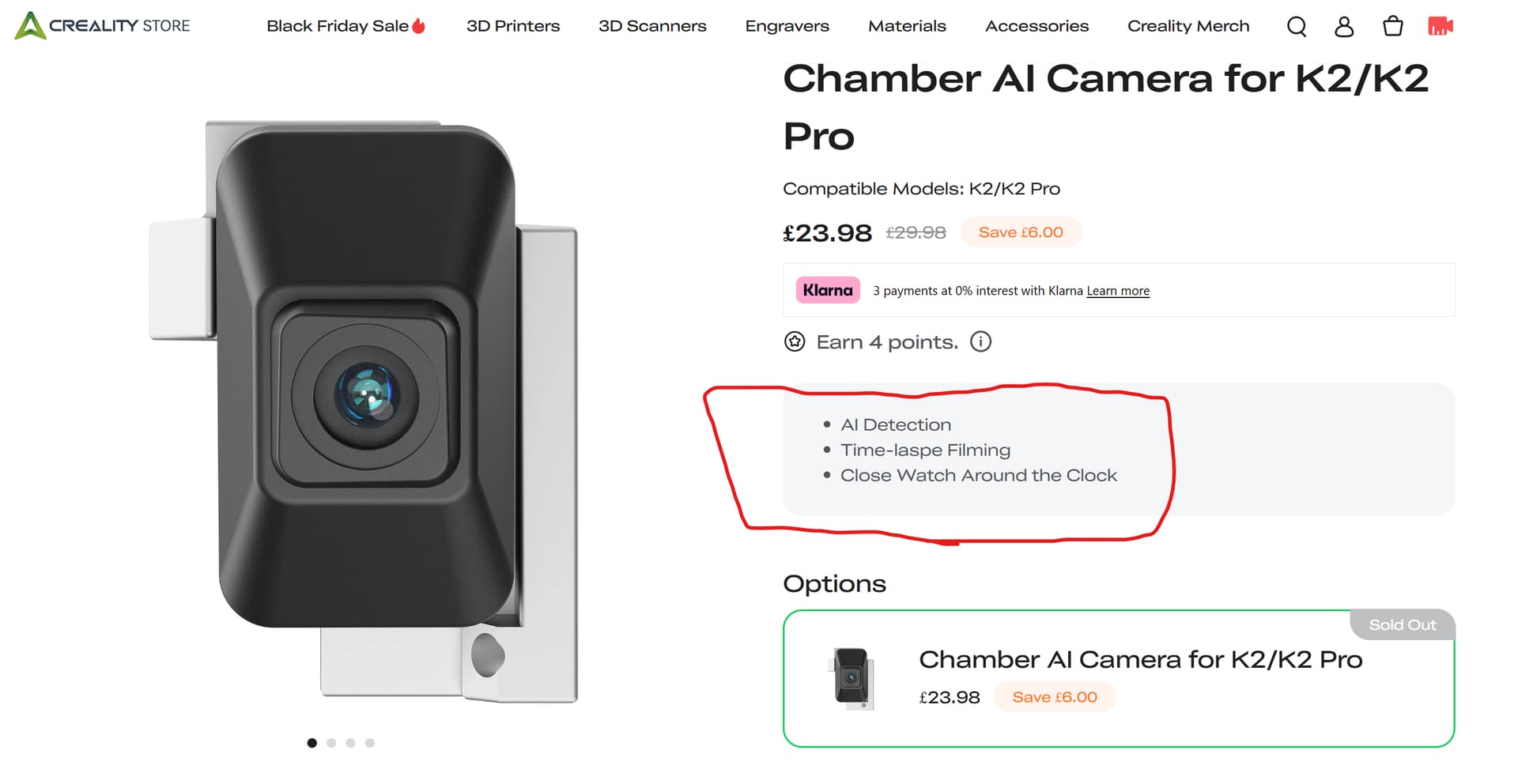 so, I brought a K2 Base model directly from Creality(uk). there was an option for the AI chamber Camera so i added that thinking it was a upgrade camera.