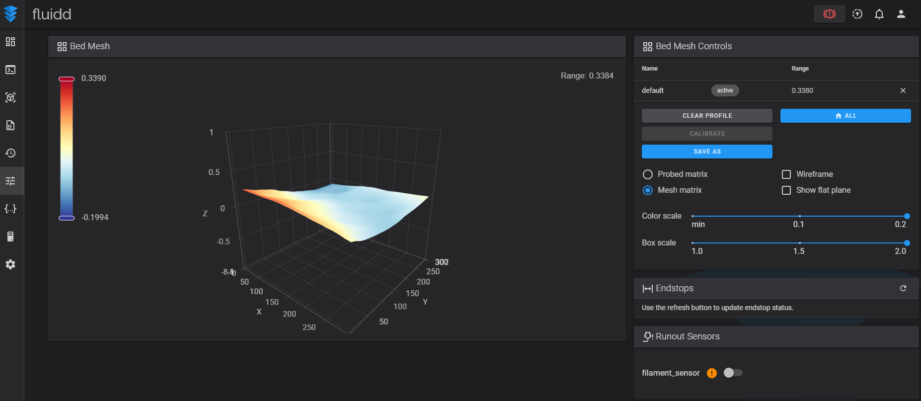 The only thing I can think of (after seeing the bed mesh in Fluidd) is trying to set the bed level. According to what I’ve read, if you try and set the z offset in Fluidd the g-code just resets it back to 0.