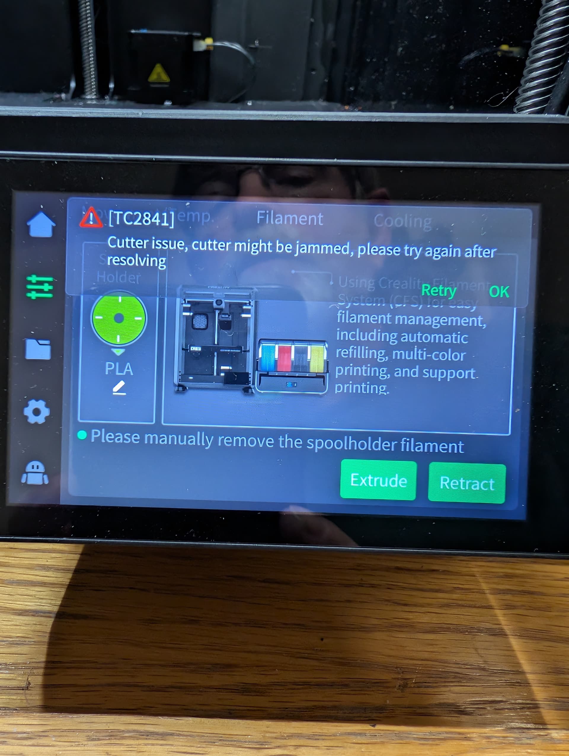Once installed I was once again able to perform normal retract operations as designed by Creality. I am still waiting for Creality for a replacement if they ever figure out what I am asking for.