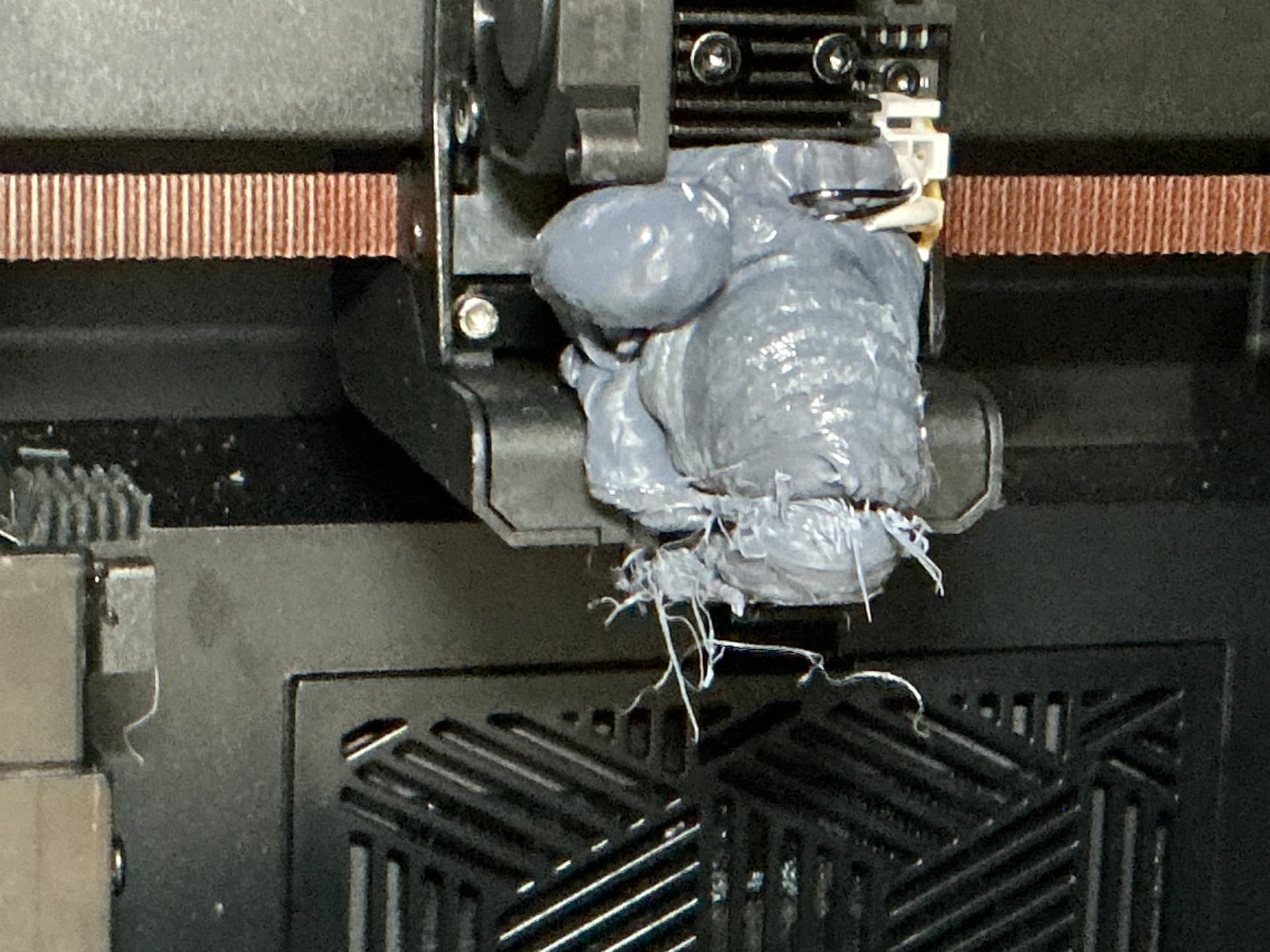 A small but useful benefit is I now know how to remove and replace the hot end and even tackling such a mongrel of a blob. I’m now concerned if it was to be a higher temp plastic although these seem adhere better to the PEI plate than PLA. Am now using it with glue.