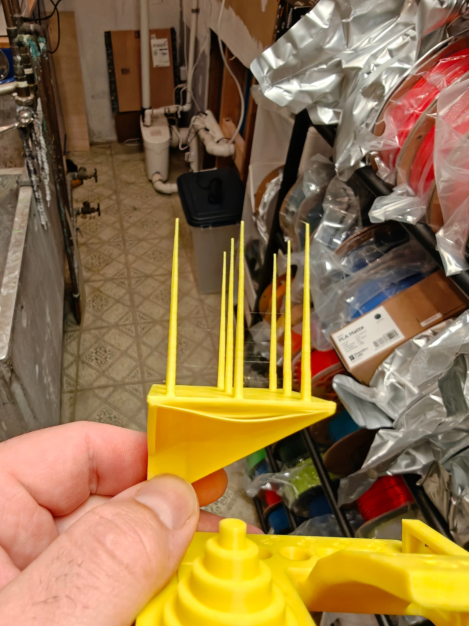 Those racks can hold up to 10 spools each and you can take of and store them by the rails.