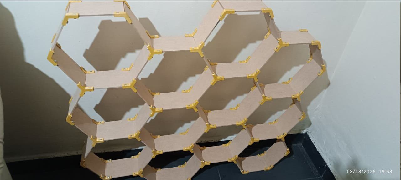 This is the Honey Shelf system, the unions are printed and the sides are cut wooden:
