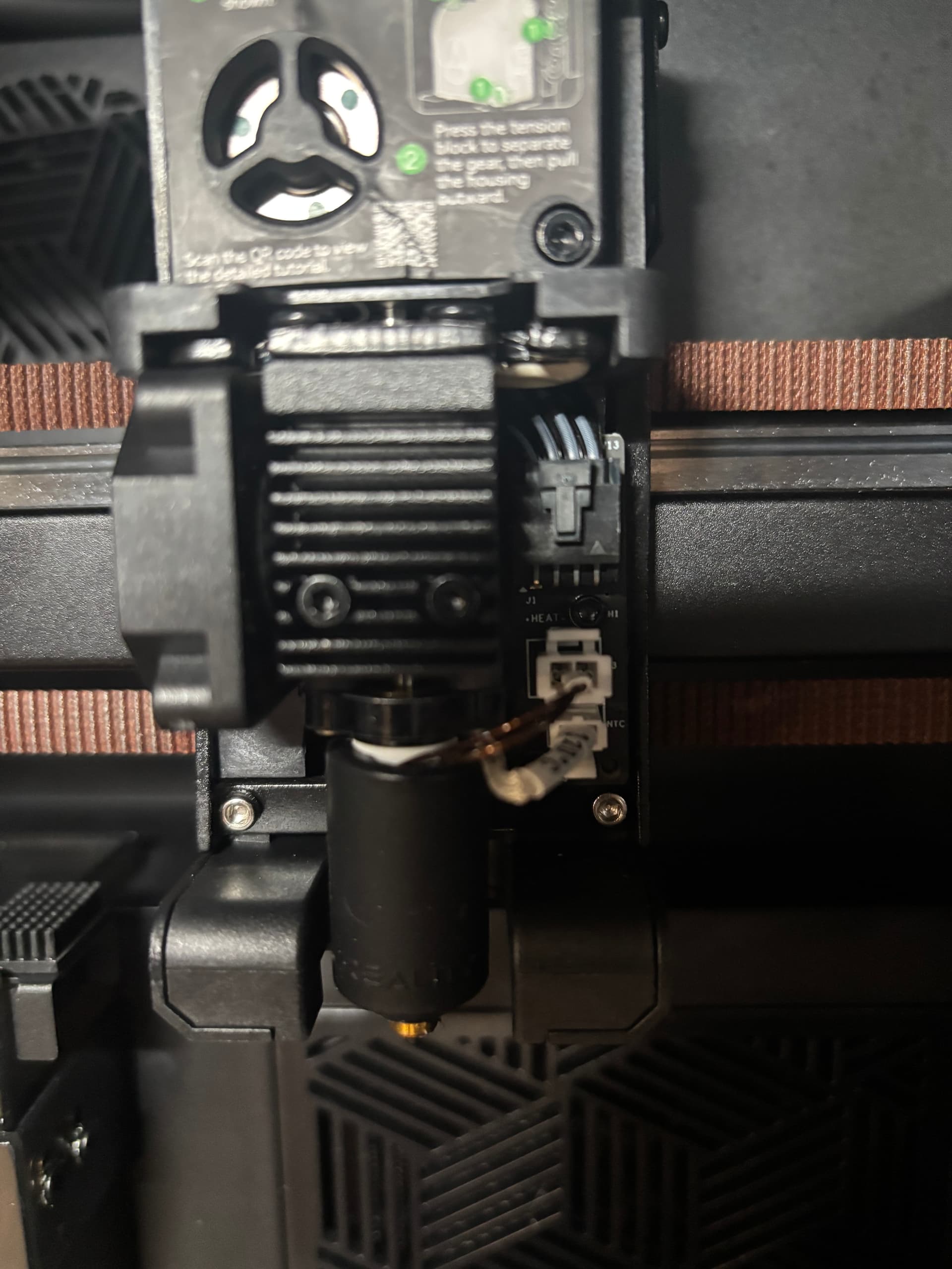 Blobs can sometimes damage or loosen something in the toolhead, especially the thermistor or heater wiring. Even if the hotend block was replaced successfully, it’s pretty common for a connector to get pulled slightly loose when removing the blob or swapping parts. Lets start by opening the toolhead cover and checking that all the plugs on the toolhead board are seated properly, especially the thermistor and heater cartridge wires. It’s also worth checking the main cable going to the print head to make sure nothing got pinched or partially unplugged. After that, power the printer off, unplug it for a couple minutes, then turn it back on and run the calibration again.