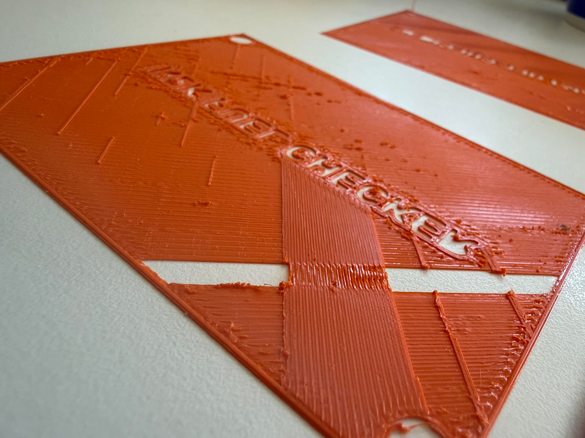 After using a 3 v3 KE for years without any mods / special settings, i bought a 5 Max. From Start, quality of prints was not very good, and became worse. Can someone with more experience have a look on my pictures, to give me Advice what to change? When i bought the V3, i had issues too, and was getting help by People that knew with one view what was going wrong. I aborted printing after first layers. The Object is a part of an enclosure and should start with a plain plate with some text.