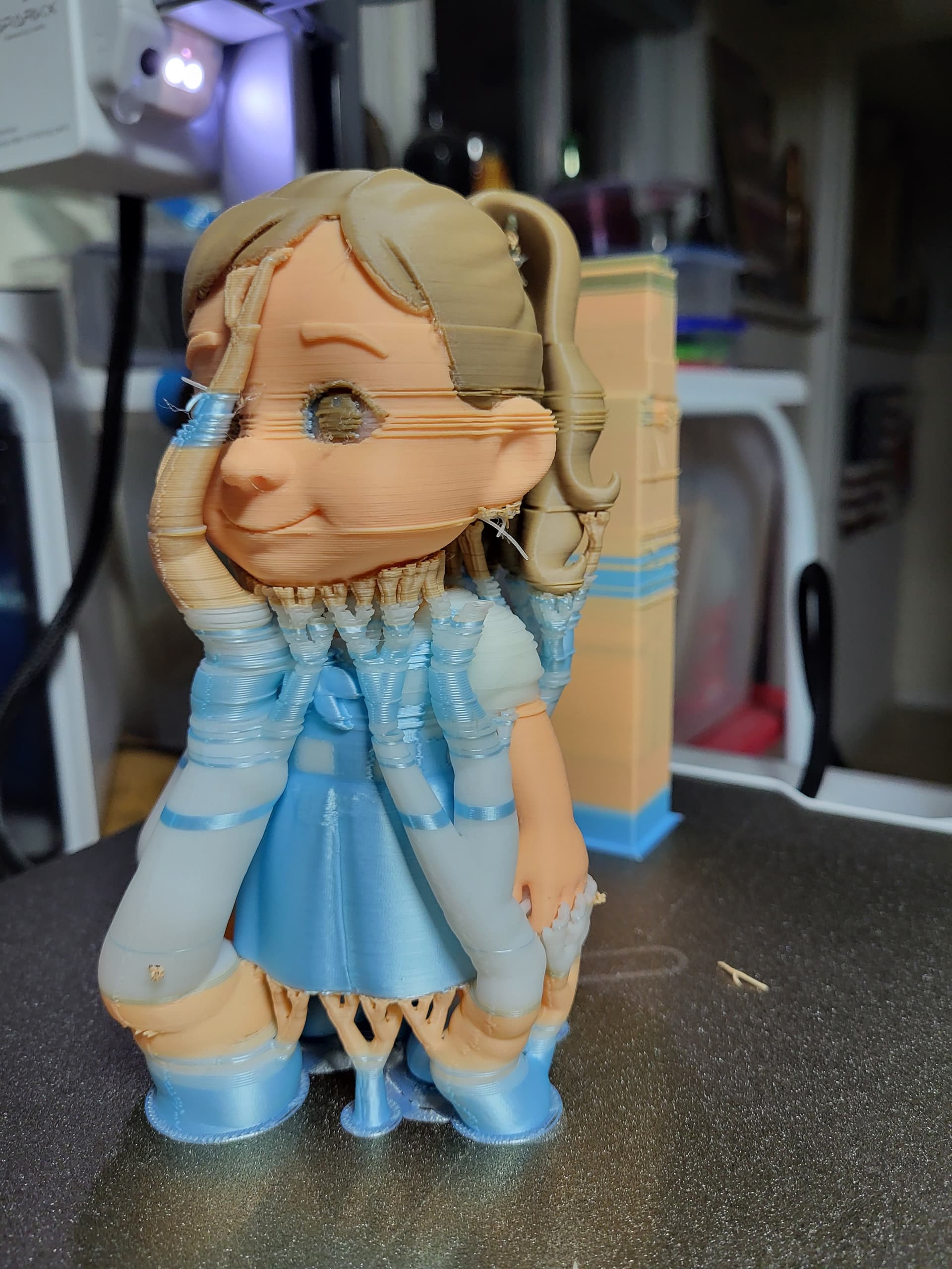 Brand New and this is my first print on this printer and I am very disappointed in the Quality it started out great then it jumped left then corrected itself and kept doing it.