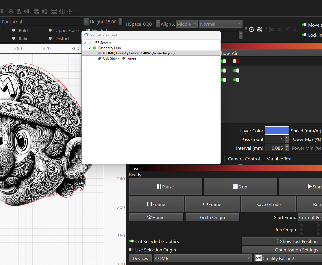 Will this work with a Falcon 2 Pro which uses two USB connections, one for the camera and one for the engraver?