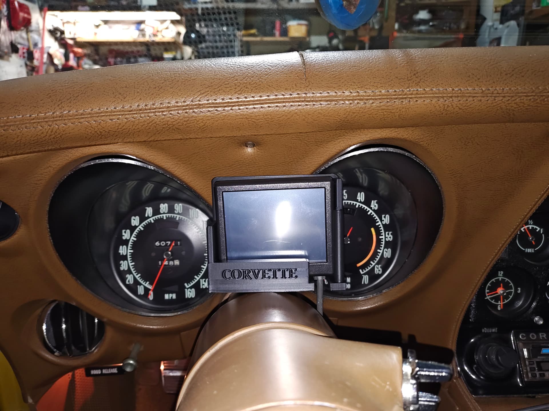 I’ve had some great success and some epic failures but it’s all part of the leaning curve. My biggest printing project is I’m creating a holder to use in my 1971 Corvette for the Holley 3.5 inch display that came with the fuel injection system I installed. This is close to the final version, I’m designing the clamp that will go around the steering column. Hopefully be done with this soon.