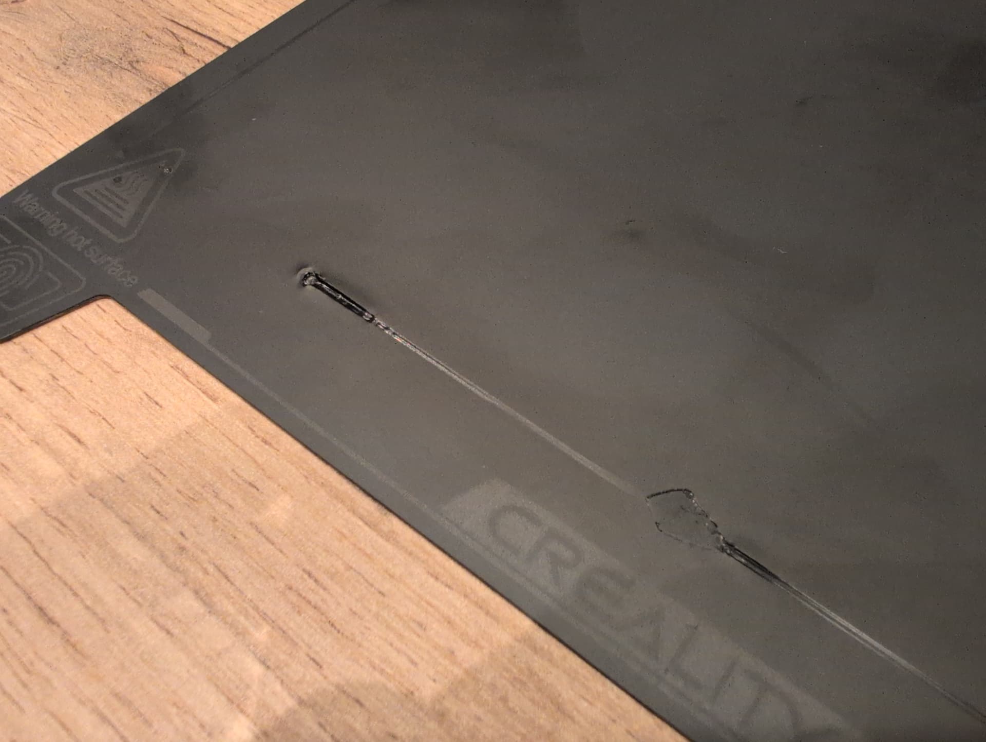 That happened to me. Creality sent me a new build plate under warranty.