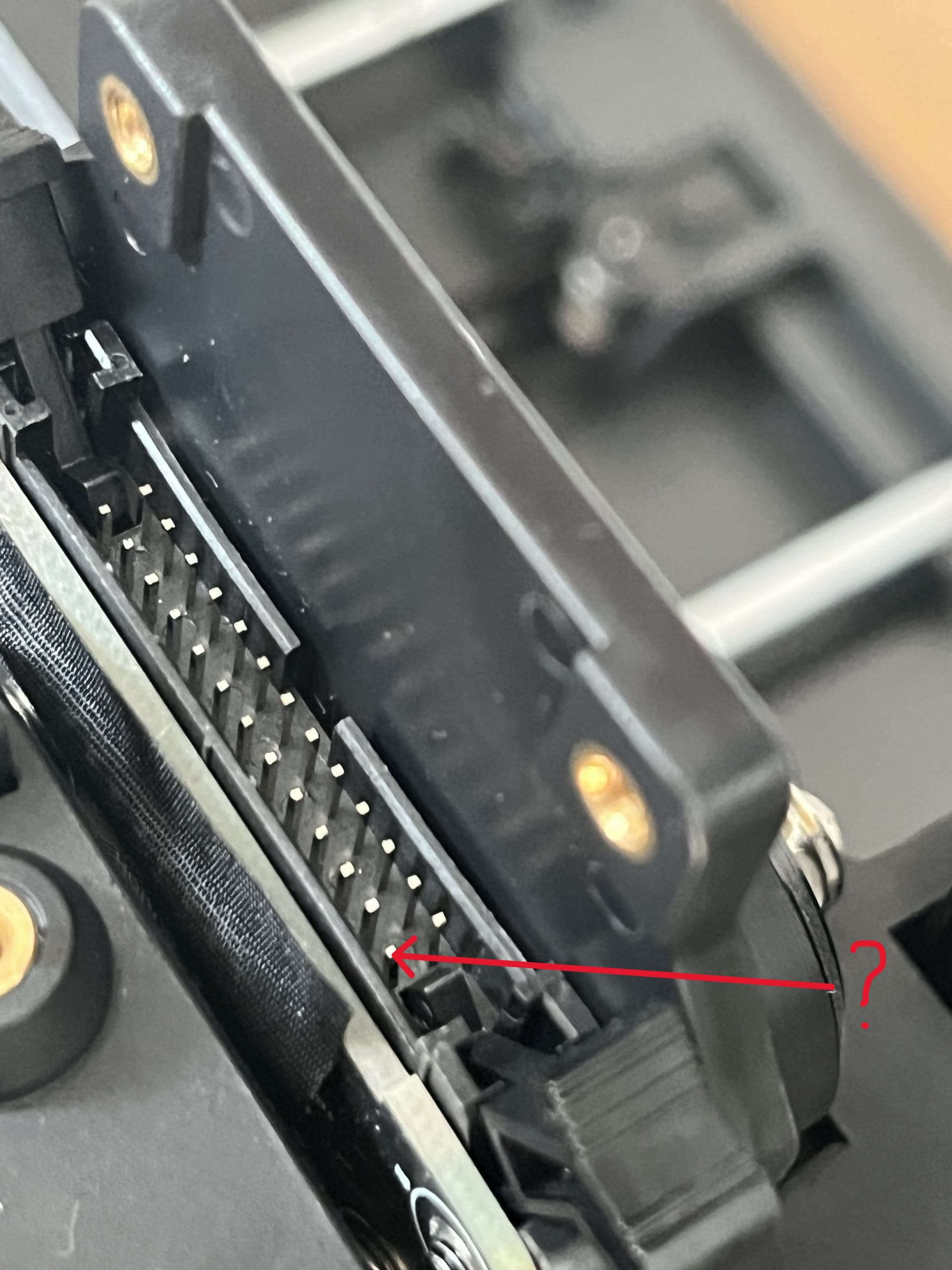 Hi brand new printer arrived with an issue in that on of the pin sockets on the print head ribbon cable was not formed properly and so when I attempted to plug it into the print head socket it must have pushed the pin down (see photos). now the printer has a fault on start up where the print head just travels to the right and continually crashes into the right hand support frame.
