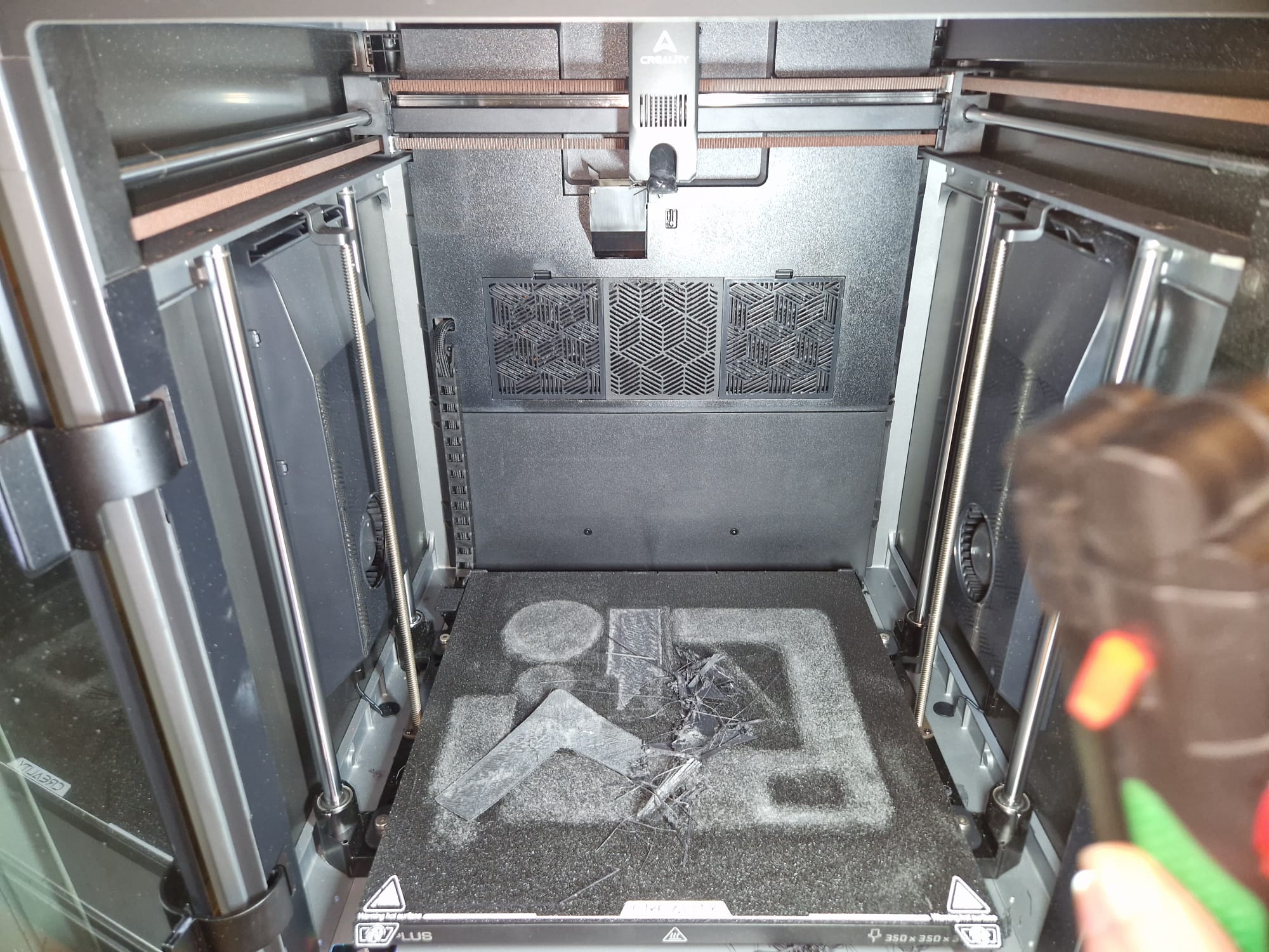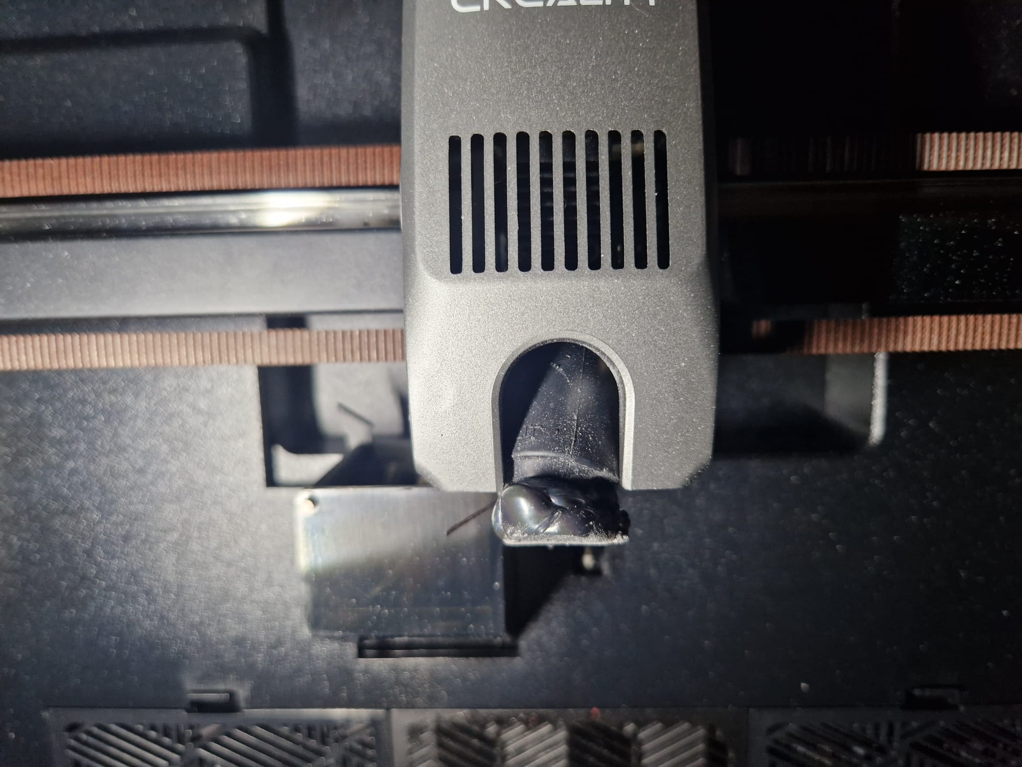 Today I startet a ASA Print, after about 1 hour later i went checking on the Print. The room smelled extremly toxic. On the Picutre You see what it look liked. The Z axe didnt move down. So it filled the nozzle, afte that it started grindind on the Build Plate. No software detection saw this. It just kept on going. (Any Ideas why?)