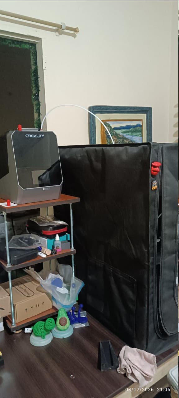 and built a table for the creality pi dryer so is higher than the printer. now my TPU prints works fine.