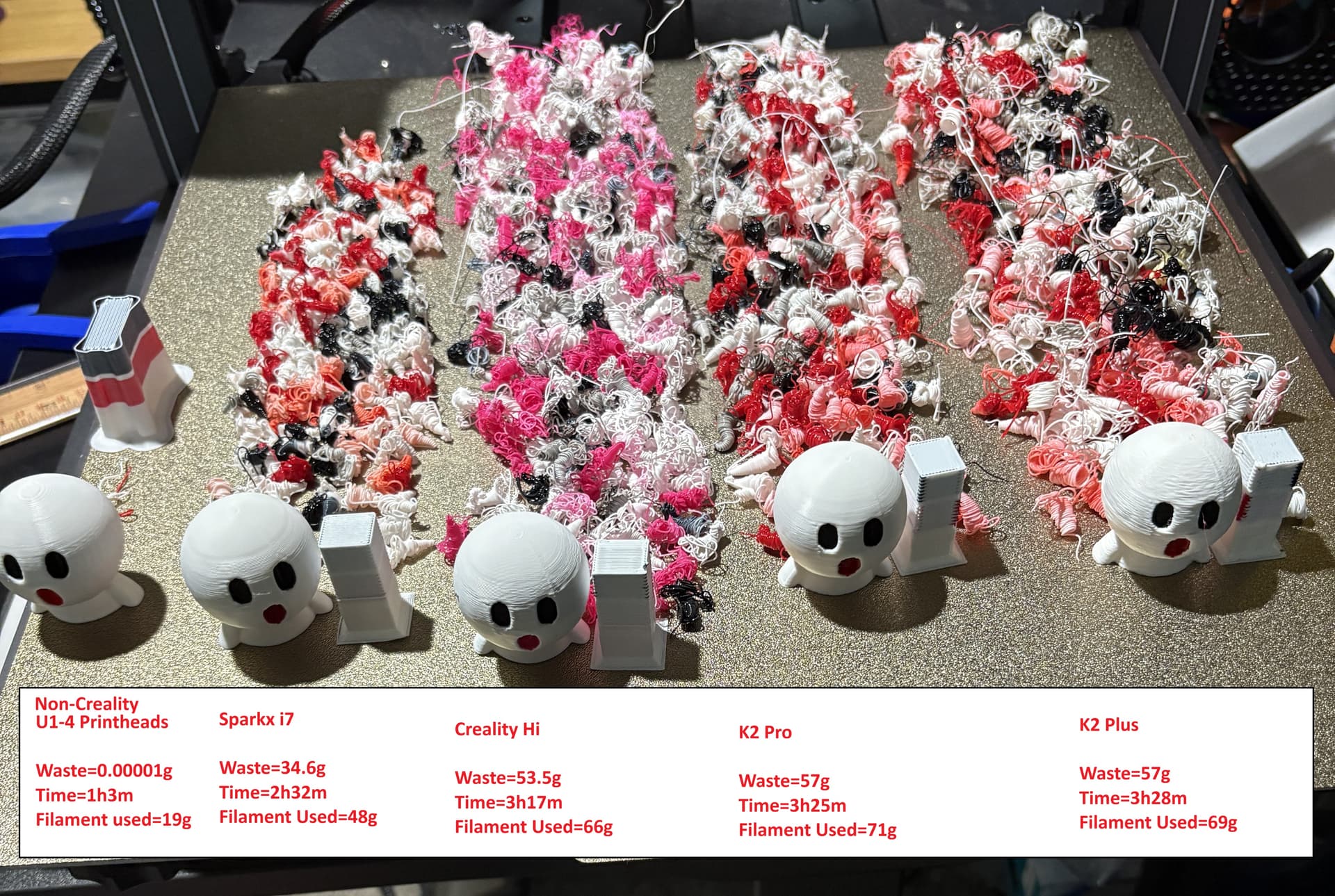 So now I did a comparison between 4 of my Creality Printers (Creality Hi, Sparkx i7, K2 Pro, K2 Plus) as well as 1 non-Creality printer that has 4 toolheads. Hopefully Creality will soon come out with such a printer.