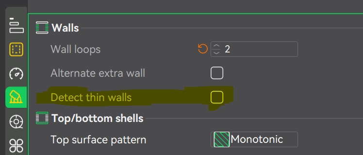 Under Advanced: “Detect narrow internal solid infill” enabled