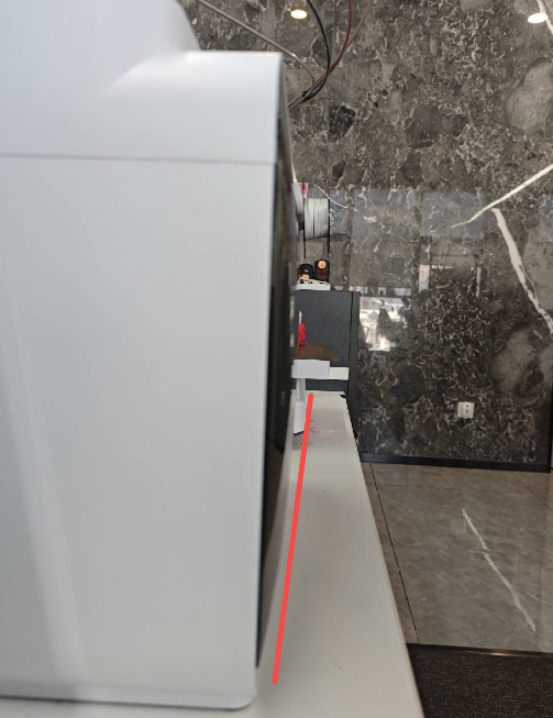The recommended distance between the i7 and the CFS lite is 8 cm (measured from the Gantry, or 2 cm from the leftmost side of the X-axis), as shown in the illustration. If the distance is too large, resistance during filament feeding and retraction will increase, and feeding resistance will also increase when printing on the right side.