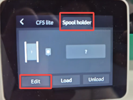 Enter the Filament interface, select External Spool Holder, edit the filament information, and tap Load.
