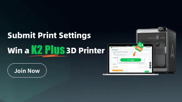 Participate in our lucky draw by uploading your 3MF Print Settings. Prizes include the K2 Plus, K1 SE, CR-Scan Ferret Pro, and bonus points!